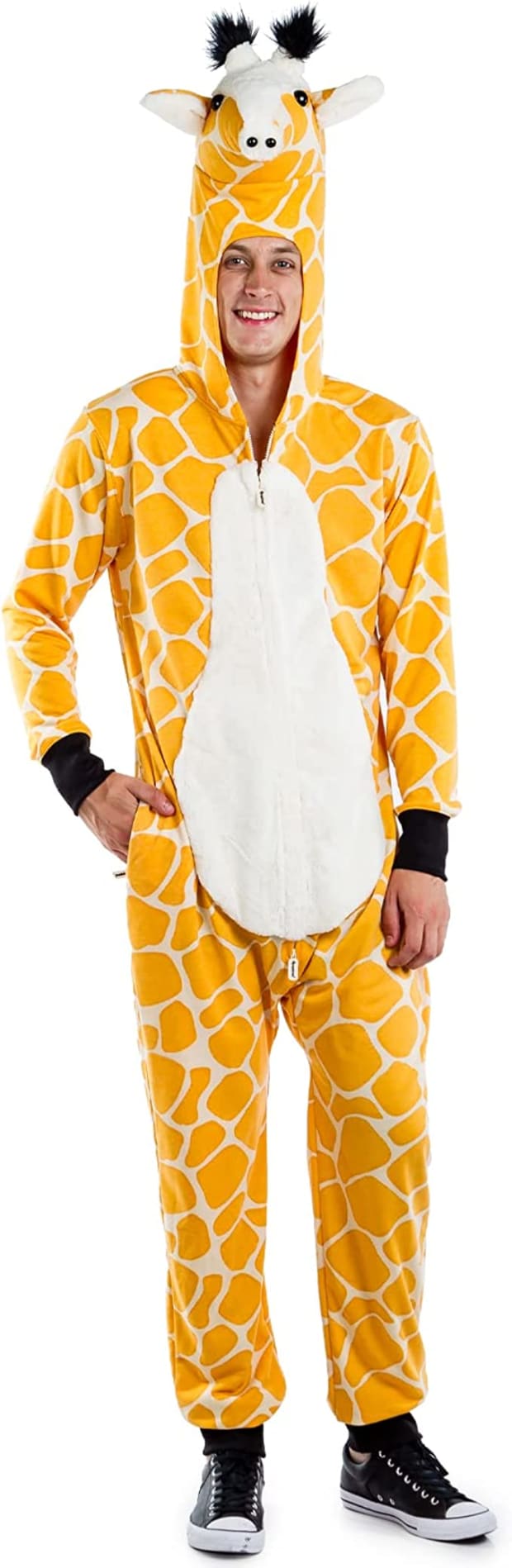 If you’re looking for a costume that will take you from weekend Halloween parties to trick-or-treating with the kids, you’ll love this one-piece giraffe suit. Size large is available with free one-day delivery and it’s sold by a small business, which means you’re supporting entrepreneurs. Reviews indicate this is a unisex costume, good for virtually everyone, and one reviewer said it was “comfy like a pajama.”