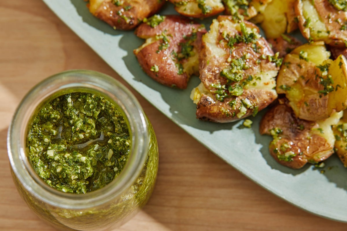 Use it like you would any pesto, to toss with pasta, spread on sandwiches or toasts, or to drizzle over cooked potatoes, eggs, chicken breast and so on. It’s a sauce that makes the most of an excellent ingredient that has been at your fingertips all along, just waiting to be discovered rather than discarded.