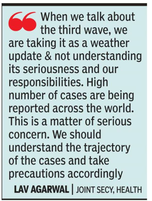“When we talk about the third wave, we are taking it as a weather update and not understanding its seriousness and our responsibilities associated with it,” joint secretary in health ministry, Lav Agarwal, said at a media briefing.