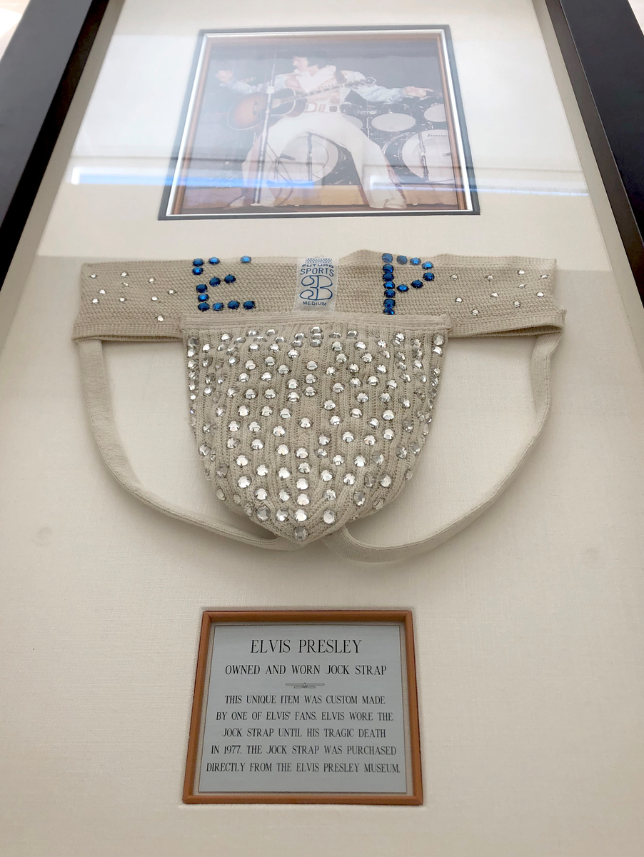 A piece of Elvis Presley memorabilia is up for sale, and it is probably the most Elvis thing you can possibly imagine - a rhinestone studded jockstrap said to have been worn by the king.