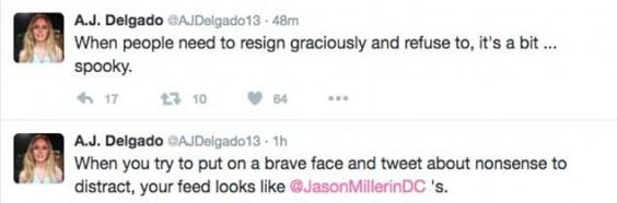 It comes after another Trump adviser, A.J. Delgado, posted a series of cryptic tweets about Mr Miller in which she appeared to suggest his involvement in a sex scandal.