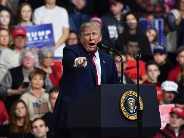 Mr Saccone spoke before Mr Trump went on stage, with a tweet containing the single word “epic” being published and swiftly deleted from the President’s official account a minute before he appeared.