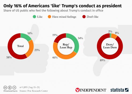 Only 16 per cent of Americans like the way Donald Trump conducts himself as US President, a new poll has found.