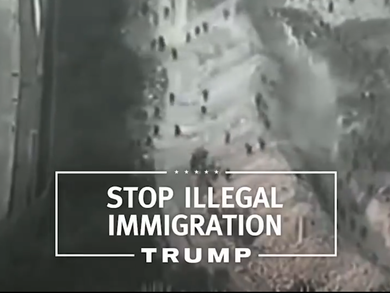 Politifact – which fact-checks statements by US politicians – says they have traced the footage back to 2014 when migrants were crossing the border into Melilla. A clip, from May 2014, is available on Youtube. The Trump campaign also appears to have added a darkening filter to the clip giving it a more sinister look.