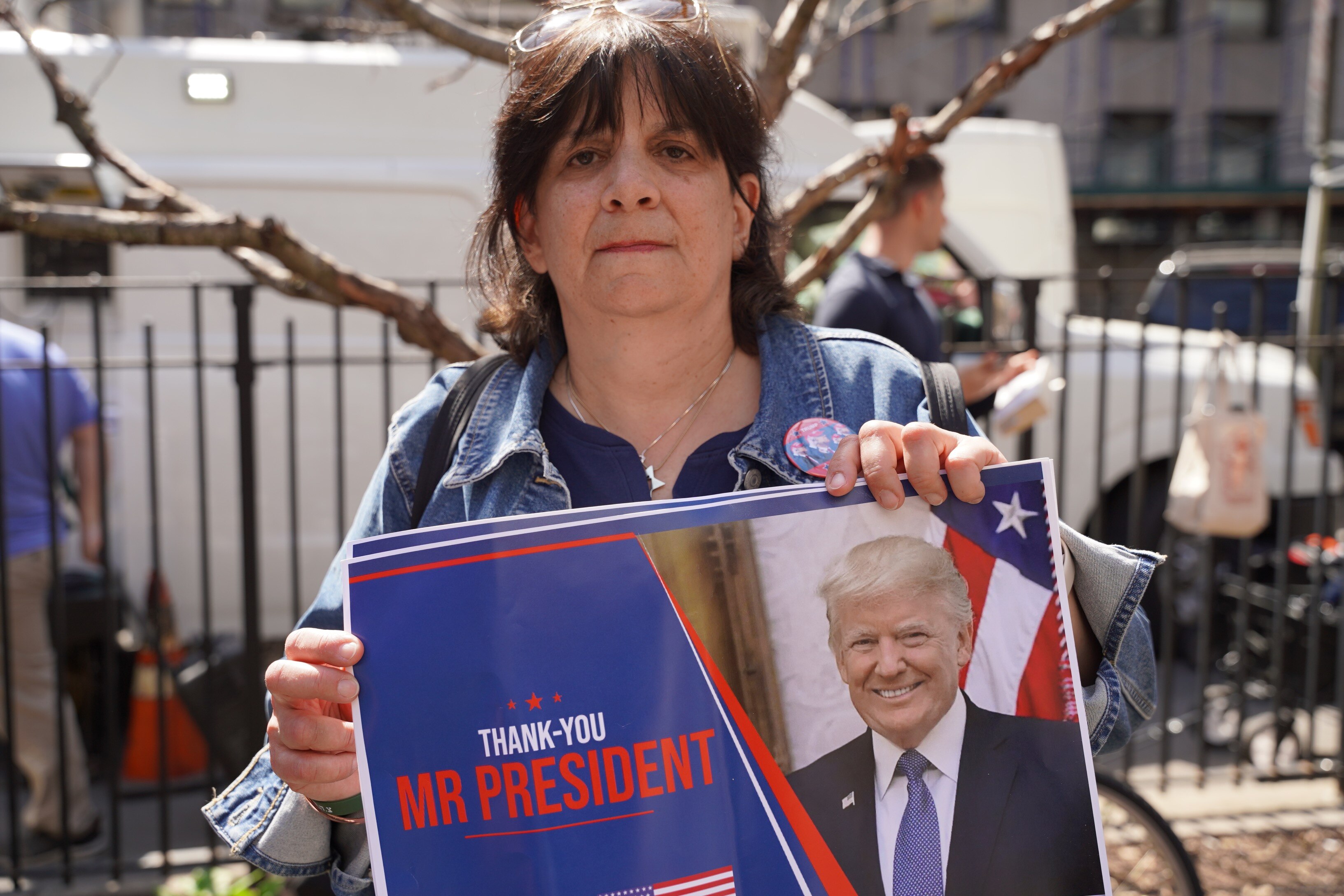 "I know he hates it the most that New York, specifically Manhattan – this place he so desperately wanted to be a part of – and for Manhattan to be the one that breaks history and bring 34 felony counts against him it's about time," one person in the crowd said.