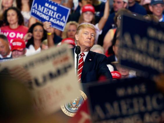 Over the next 72 minutes, the President launched into one angry rant after another, repeatedly attacking the media and providing a lengthy defence of his response to the violent clashes in Charlottesville, between white supremacists and neo-Nazis and the counter-protesters who challenged them. He threatened to shut down the government if he doesn't receive funding for a wall along the southern border, announced that he will "probably" get rid of the North American Free Trade Agreement (Nafta), attacked the state's two Republican senators, repeatedly referred to protesters as "thugs" and coyly hinted that he will pardon Joe Arpaio, the former sheriff of Maricopa County who was convicted in July of criminal contempt in Arizona for ignoring a judge's order to stop detaining people because he merely suspected them of being undocumented immigrants.