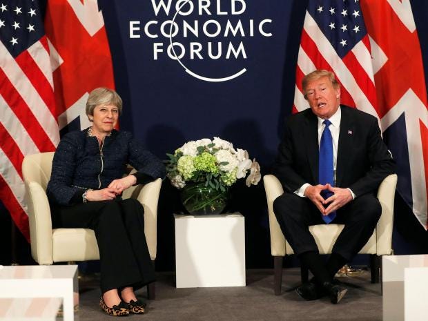 Following Ms May’s and Mr Trump’s joint conference at the World Economic Forum, a Downing Street spokesman said the two leaders reiterated “their desire for a strong trading relationship” after Britain’s exit from the European Union.