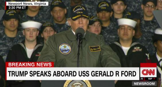 But ahead of a speech on the USS Gerald Ford at Newport Mews, where he said he would expand naval spending, Mr Trump stood by the country’s most senior law enforcement official and said he had “total” confidence in him.
