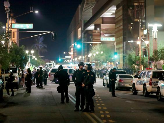 There was a heavy police presence in downtown Phoenix, with law enforcement seeking to maintain civility between Trump supporters and detractors. Authorities used tear gas to disperse protesters after the rally ended.