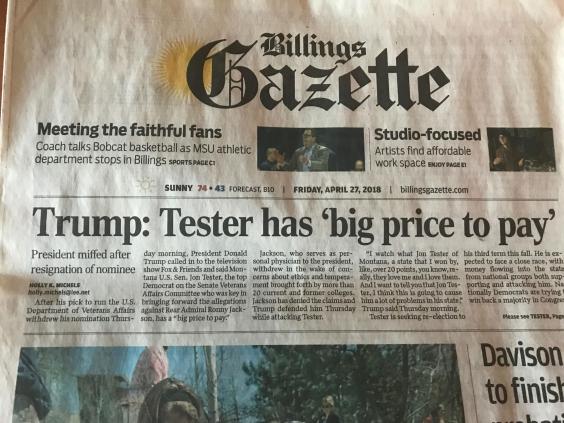 So there is a new nervousness in Big Sky country. On Thursday, a small gaggle of veterans staged an impromptu news conference to insist that they and everybody else who has served are certain Tester did the country and them a favour.