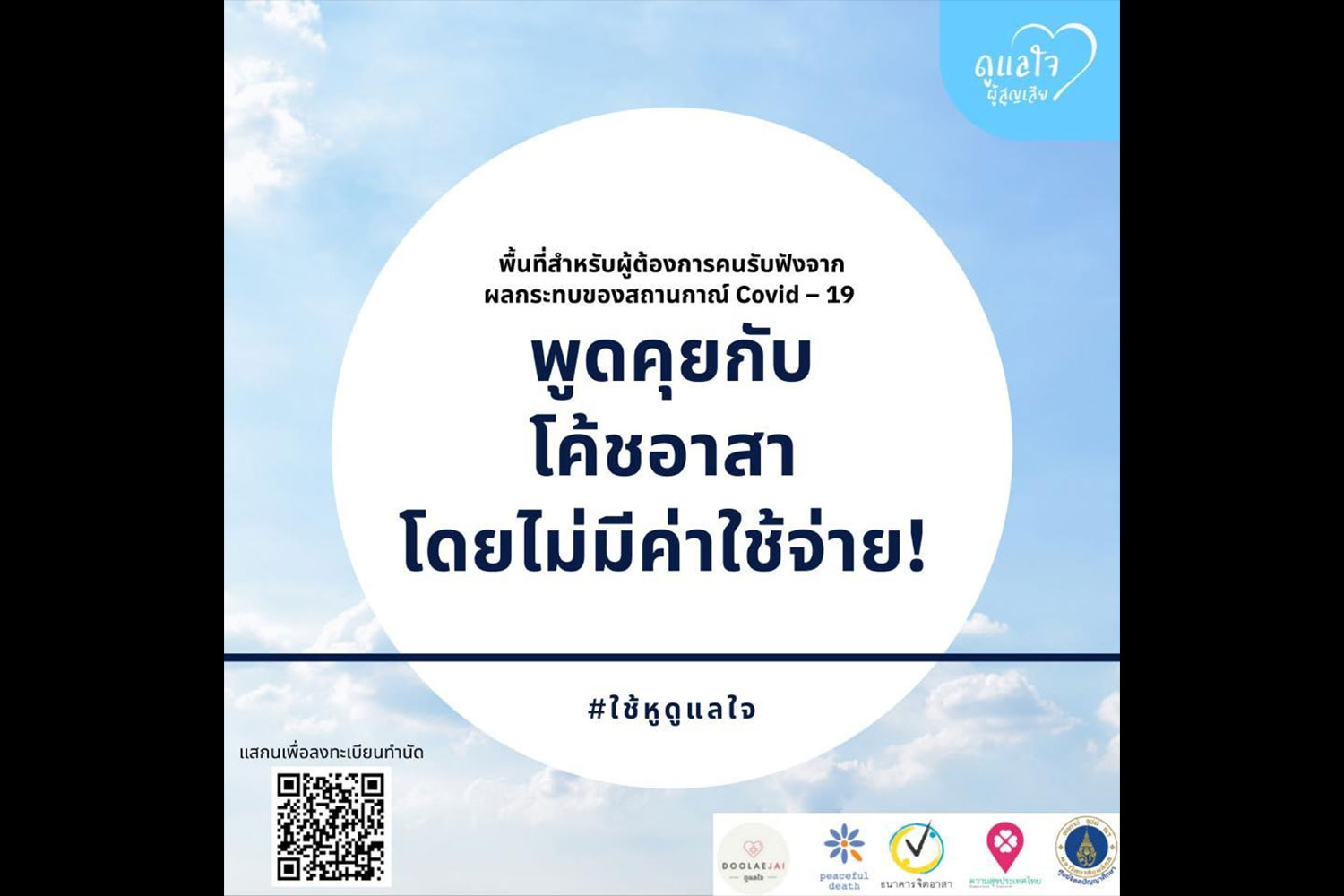Anyone looking for a non-judgemental person with positive energy to listen to their pain can register and make a reservation without fee via doolaejai.com. The services will be conducted via Zoom or Line Call and their stories will be kept confidential.