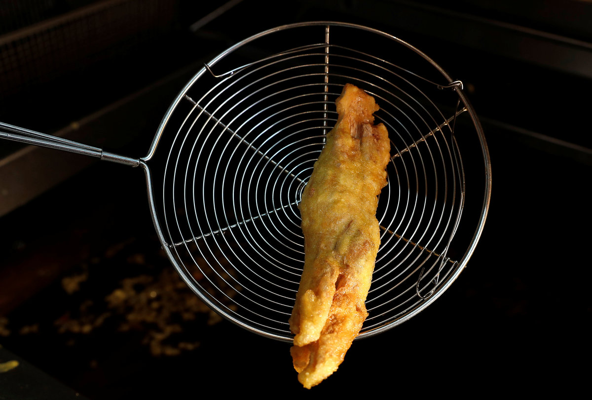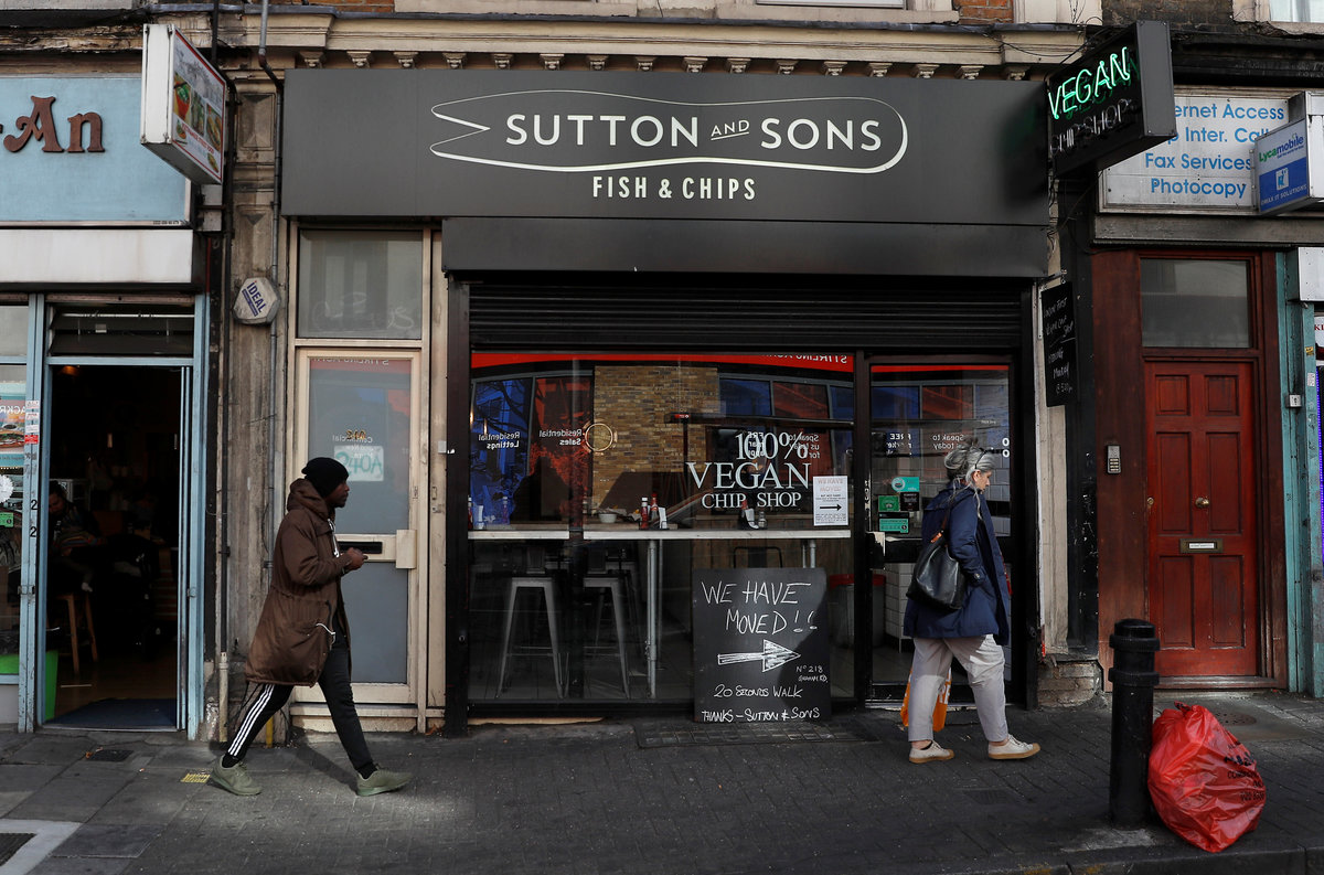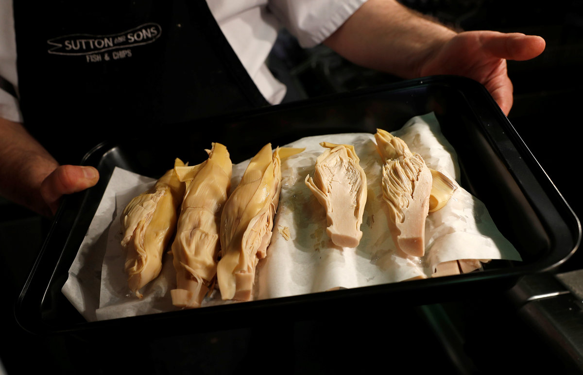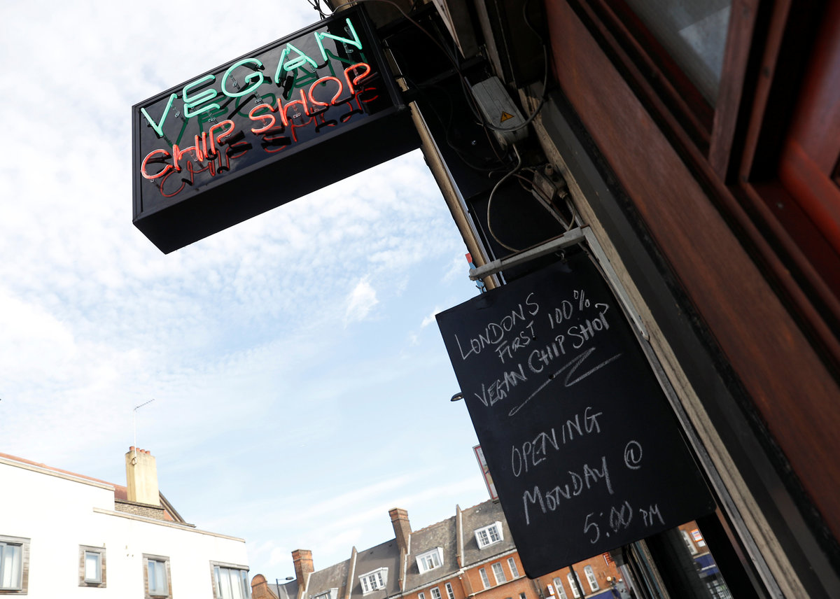 LONDON (Reuters) - Fish and chips, scampi and prawn cocktail are all on the menu at chippie owner Daniel Sutton's newest branch, with one caveat: "There's no fish in our fish," he says.
