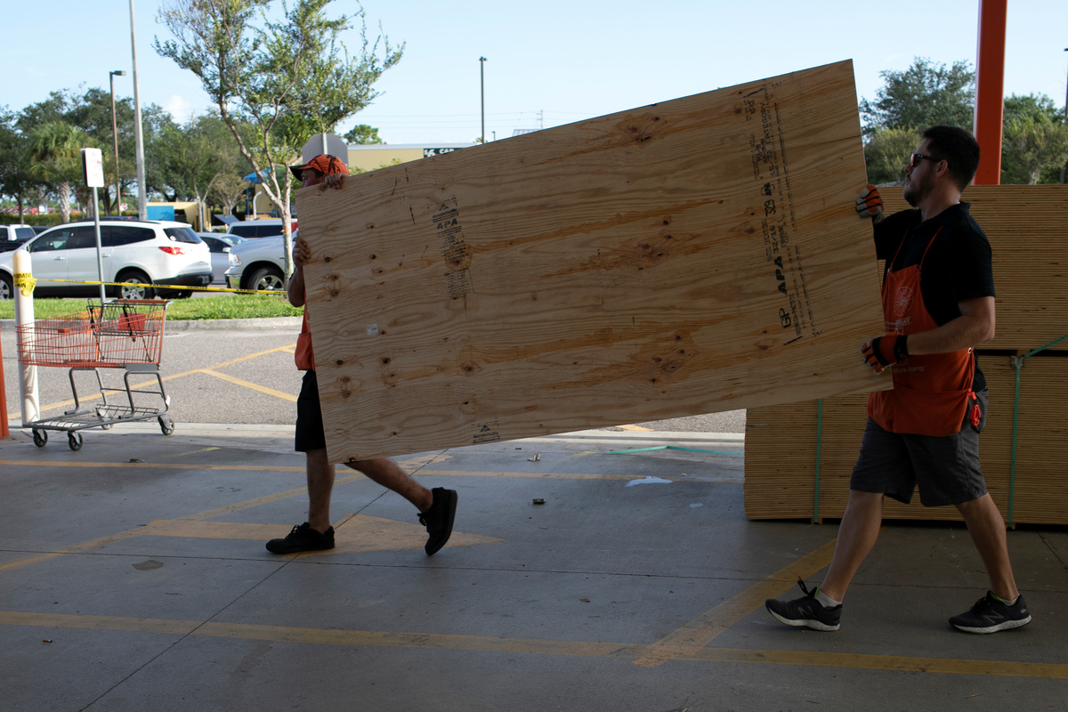 St. Augustine local and tourist prepare their homes and enjoy some sunny weather before the arrival of Hurricane Dorian in St. Agustine, Florida, U.S. August 31, 2019. REUTERS/Maria Alejandra CardonaA sign at the entrance of the beach is seen ahead of the arrival of Hurricane Dorian in Daytona Beach, Florida, U.S. August 31, 2019. REUTERS/Marco BelloBeachgoers are seen ahead of the arrival of Hurricane Dorian in Daytona Beach, Florida, U.S. August 31, 2019. REUTERS/Marco BelloSt. Augustine local and tourist prepare their homes and enjoy some sunny weather before the arrival of Hurricane Dorian in St. Agustine, Florida, U.S. August 31, 2019. REUTERS/Maria Alejandra CardonaPeople prepare sand bags ahead of the arrival of Hurricane Dorian in Titusville, Florida, U.S. August 31, 2019. REUTERS/Marco BelloPeople prepare sand bags ahead of the arrival of Hurricane Dorian in Titusville, Florida, U.S. August 31, 2019. REUTERS/Marco BelloTrucks of the Florida Power & Light Company (FPL) are seen ahead of the arrival of Hurricane Dorian in Daytona Beach, Florida, U.S. August 31, 2019. REUTERS/Marco BelloA man loads a truck with sand bags ahead of the arrival of Hurricane Dorian in Titusville, Florida, U.S. August 31, 2019. REUTERS/Marco BelloEric Silagy (C), president and CEO of Florida Power & Light Company (FPL), talks with workers ahead of the arrival of Hurricane Dorian in Daytona Beach, Florida, U.S. August 31, 2019. REUTERS/Marco BelloA truck of the Florida Power & Light Company (FPL) is seen ahead of the arrival of Hurricane Dorian in Daytona Beach, Florida, U.S. August 31, 2019. REUTERS/Marco BelloA small boy helps his father secure a door before the arrival of Hurricane Dorian on the Great Abaco island town of Marsh Harbour, Bahamas, August 31, 2019. REUTERS/Dante CarrerShoppers walk out a Walmart store ahead of the arrival of Hurricane Dorian in Titusville, Florida, U.S. August 31, 2019. REUTERS/Marco BelloA man carries a sheet of plywood at a Home Depot store ahead of the arrival of Hurricane Dorian in Titusville, Florida, U.S. August 31, 2019. REUTERS/Marco BelloMen lift a sheet of plywood at a Home Depot store ahead of the arrival of Hurricane Dorian in Titusville, Florida, U.S. August 31, 2019. REUTERS/Marco BelloMinott Cole of Jacksonville, Florida looks on outside the reinforced hangar after his flight in a North American Aviation T-6 Texan vintage airplane of Warbird Adventures, Inc. at Kissimmee Gateway Airport ahead of the arrival of Hurricane Dorian in Kissimmee, Florida, U.S., August 31, 2019. REUTERS/Gregg NewtonMinott Cole of Jacksonville, Florida prepares to land with pilot Kevin Garcia at Kissimmee Gateway Airport in a North American Aviation T-6 Texan vintage airplane of Warbird Adventures, Inc., in their last flight ahead of the arrival of Hurricane Dorian in Kissimmee, Florida, U.S., August 31, 2019. REUTERS/Gregg NewtonVintage aircrafts including the Brazilian Santos Dumont Demoiselle, Hiller H-23 helicopter and a Curtiss P-40 Warhawk are packed inside the hangar of Warbird Adventures, Inc. at Kissimmee Gateway Airport ahead of the arrival of Hurricane Dorian in Kissimmee, Florida, U.S. August 31, 2019. REUTERS/Gregg NewtonBahamians prepare for the arrival of Hurricane Dorian in Nassau, Bahamas August 31, 2019. REUTERS/Catarina DemonyShoppers at a supermarket are seen before the arrival of Hurricane Dorian on the Great Abaco island town of Marsh Harbour, Bahamas, August 31, 2019. REUTERS/Dante CarrerContainers of drinking water are seen in the shelf of a supermarket before the arrival of Hurricane Dorian on the Great Abaco island town of Marsh Harbour, Bahamas, August 31, 2019. REUTERS/Dante CarrerA man constructs storm shutters before the arrival of Hurricane Dorian on the Great Abaco island town of Marsh Harbour, Bahamas, August 31, 2019. REUTERS/Dante CarrerShoppers at a local supermarket are seen before the arrival of Hurricane Dorian on the Great Abaco island town of Marsh Harbour, Bahamas, August 31, 2019. REUTERS/Dante CarrerA man repurposes a sheet of wood to protect his windows before the arrival of Hurricane Dorian on the Great Abaco island town of Marsh Harbour, Bahamas, August 31, 2019. REUTERS/Dante CarrerU.S. President Donald Trump's Mar-a-Lago Club is shown ahead of the arrival of Hurricane Dorian in Palm Beach, Florida, U.S., August 31, 2019. REUTERS/Joe Skipper