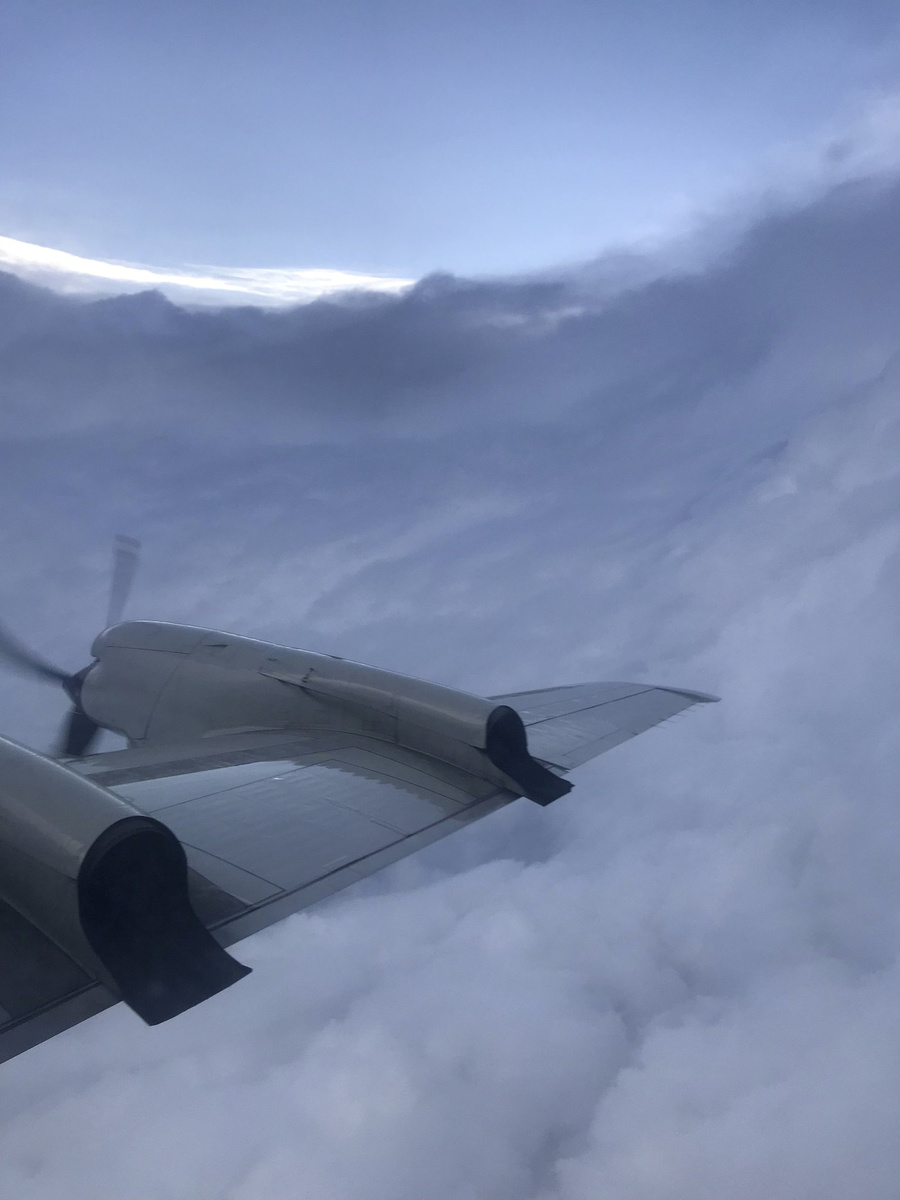 Hurricane Dorian is seen from the National Oceanic and Atmospheric Administration NOAA-42 WP-3D Orion aircraft during a reconnaissance mission over the Atlantic Ocean, August 30, 2019 in this handout image obtained from social media. Picture taken August 30, 2019. LCDR Robert Mitchell/NOAA/Handout via REUTERS