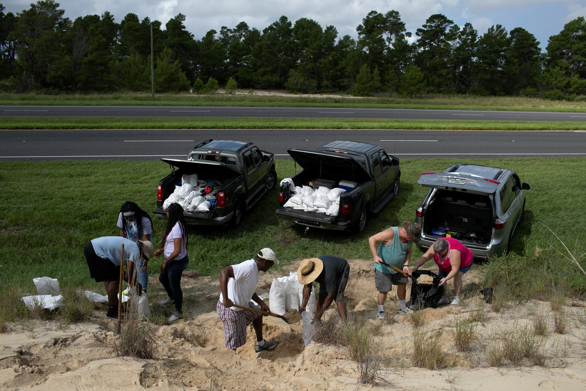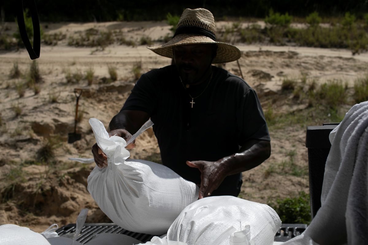 On Tybee Island, a Georgia coastal barrier island, authorities put out sand for sandbags to protect against possible flooding in the marshy area.