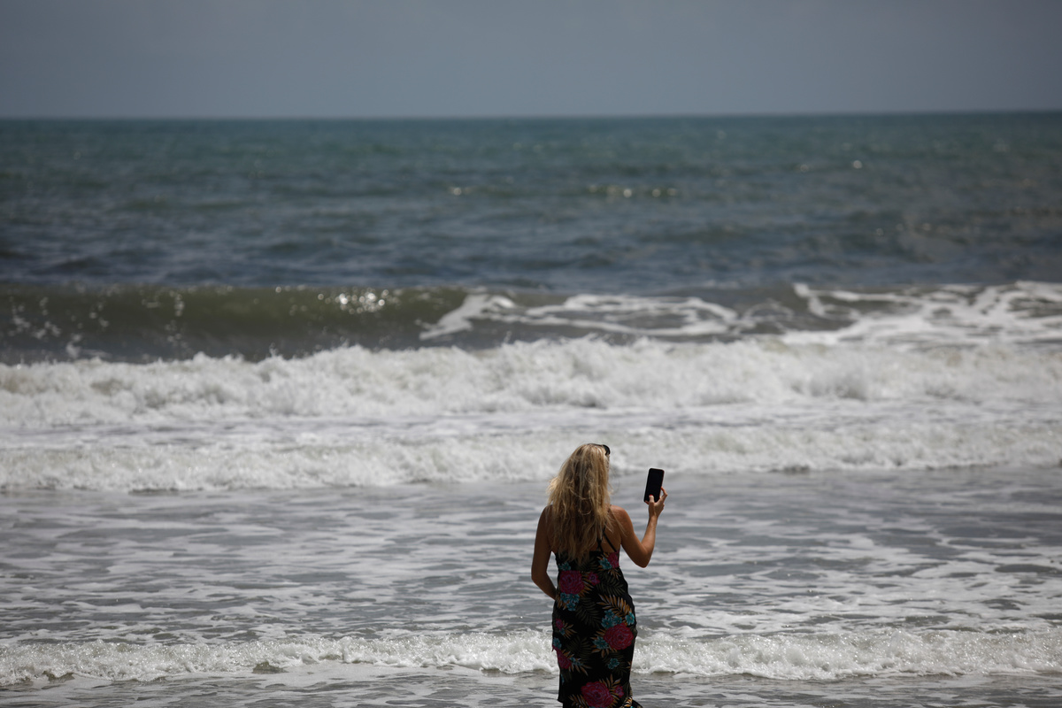 A woman uses her phone to take photos ahead of the arrival of Hurricane Dorian in Cocoa Beach, Florida, U.S. August 31, 2019. REUTERS/Marco Bello