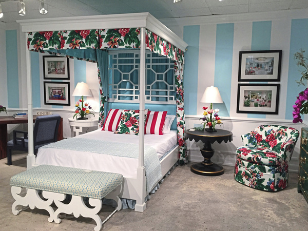 During the Spring High Point Market, Kindel Furniture showed off the new Tuxedo Park poster bed from the Dorothy Draper Collection. It's a reproduction of the famous designer's bed from her room in the Carlyle Hotel in New York City. The new version can be customized with or without a canopy or with four posters or just two.