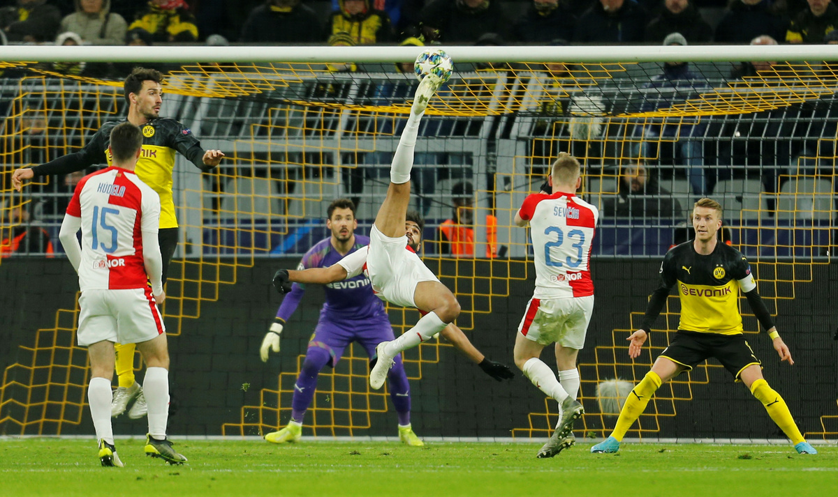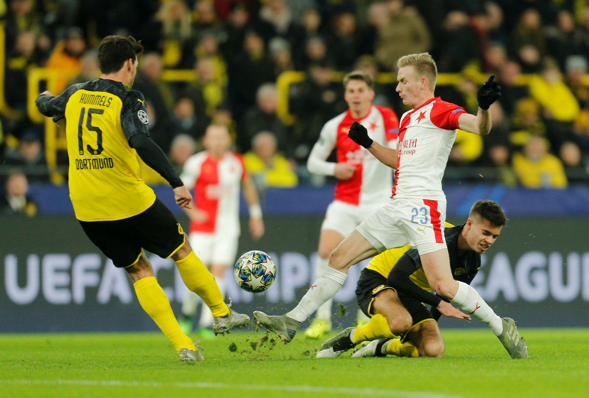 Dortmund advance to knockout stage with 2-1 win over Slavia