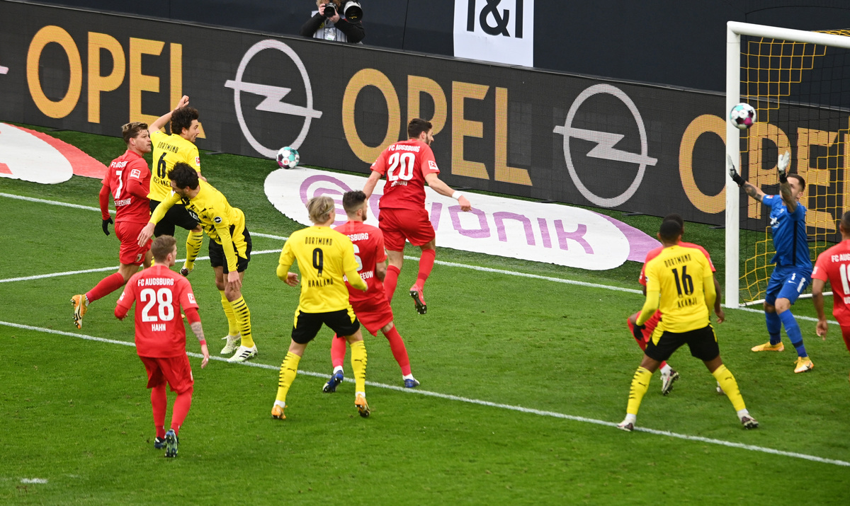 Augsburg opened up the Dortmund defence in the 10th minute with a quick move which ended with the unmarked Andre Hahn firing in.