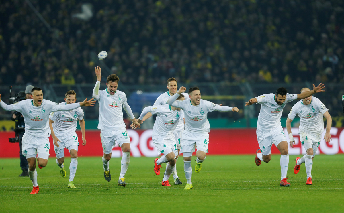 Max Kruse netted the decisive spot kick for Bremen whose goalkeeper Jiri Pavlenka had saved penalties from Dortmund's Paco Alcacer and Maximilian Philipp.