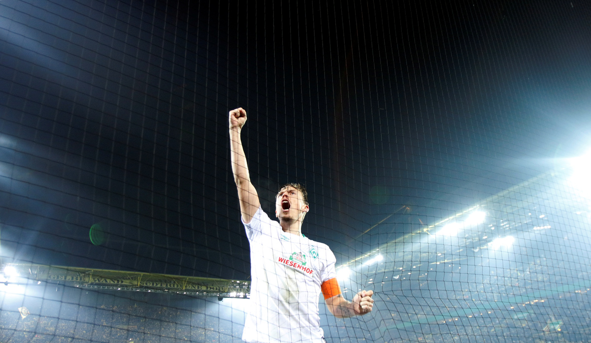 Soccer Football - DFB Cup - Third Round - Borussia Dortmund v Werder Bremen - Signal Iduna Park, Dortmund, Germany - February 5, 2019 Werder Bremen's Max Kruse celebrates after the match REUTERS/Leon Kuegeler