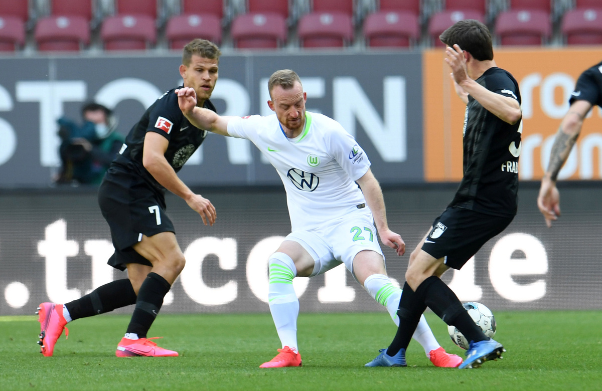 VfL Wolfsburg reignited hopes of Europa League football next season with a 2-1 win at Augsburg courtesy of Daniel Ginczek's stoppage-time winner that moved them up to sixth on 39.