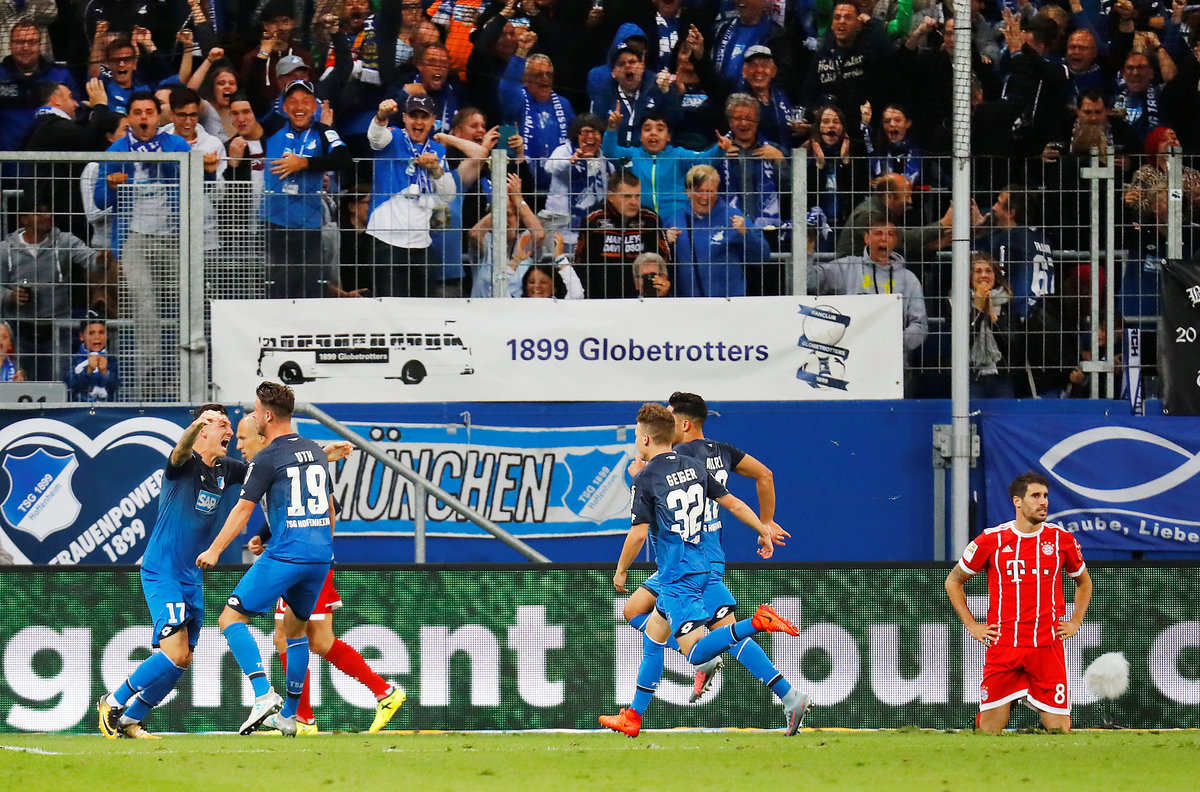 Hoffenheim took the lead against the champions in the 27th minute when Andre Kramaric caught Bayern unawares with a quick throw-in to Uth who scored from the edge of the area.