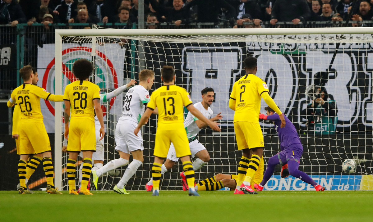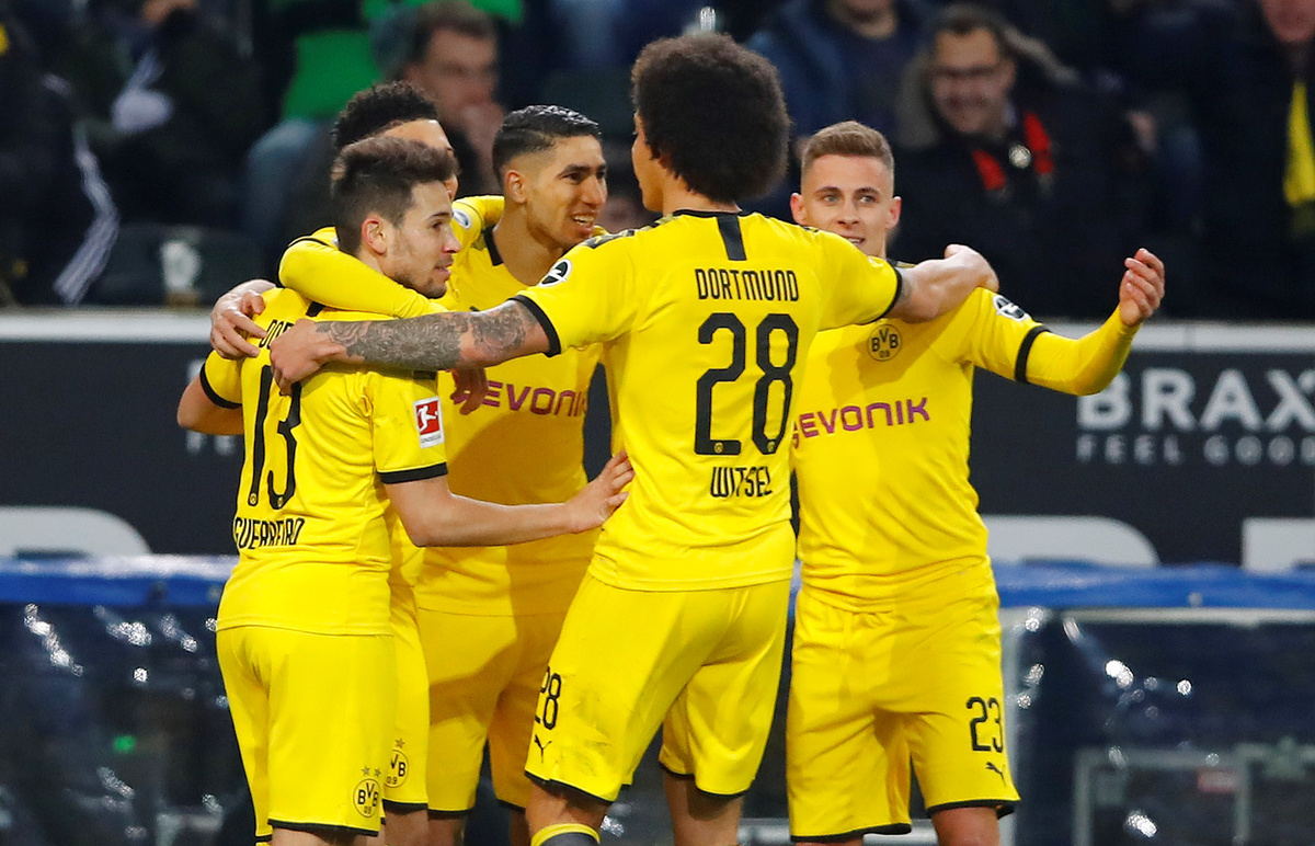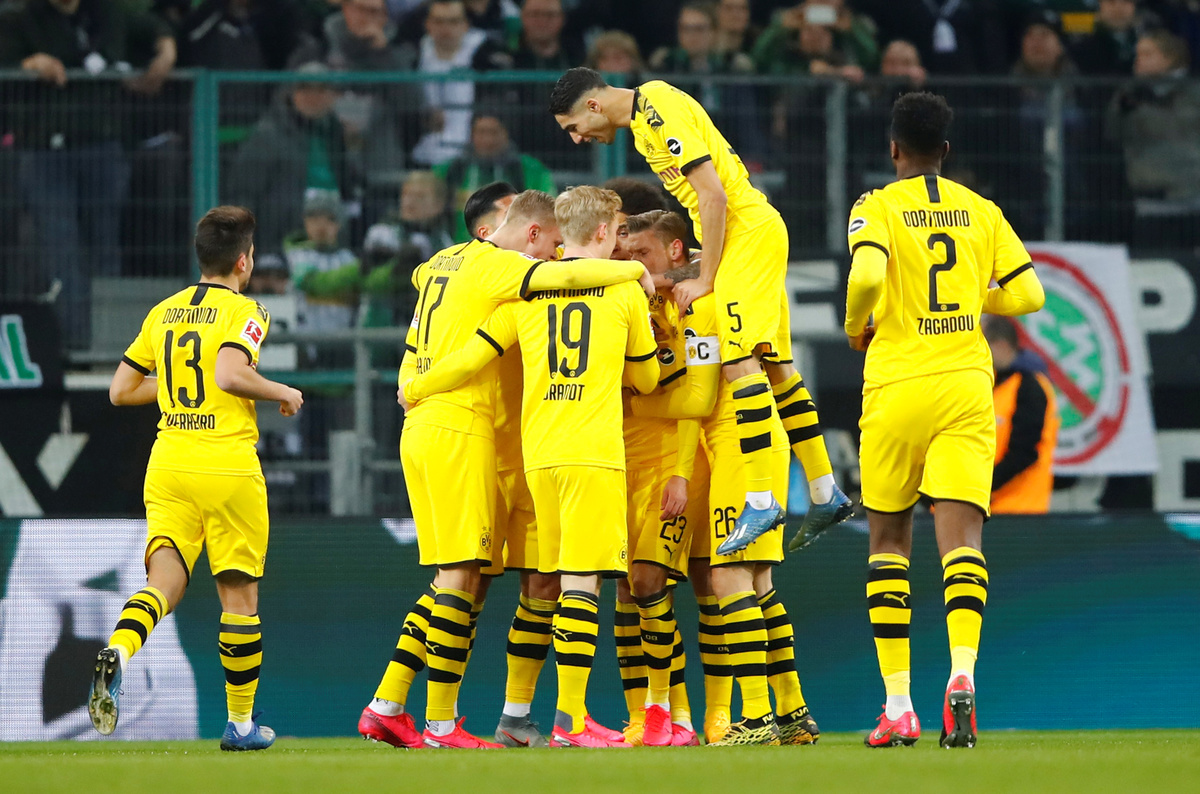 Gladbach struck back five minutes after the restart with a Lars Stindl tap-in but Dortmund hit back in the 71st when Hakimi latched on to a Jadon Sancho through ball, raced into the box and beat keeper Yann Sommer.