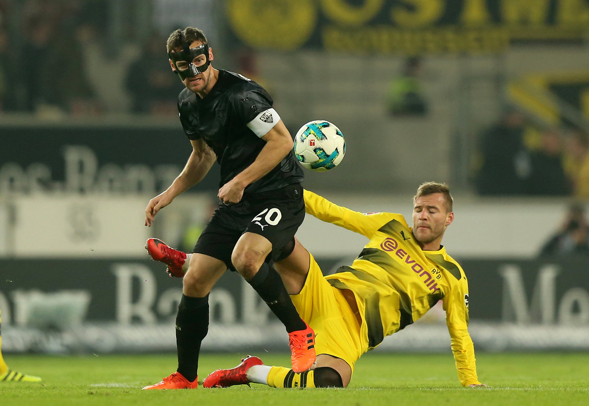 Soccer Football - Bundesliga - VfB Stuttgart vs Borussia Dortmund - Mercedes-Benz Arena, Stuttgart, Germany - November 17, 2017 Stuttgart's Christian Gentner in action with Borussia Dortmund’s Andriy Yarmolenko REUTERS/Thomas Niedermueller