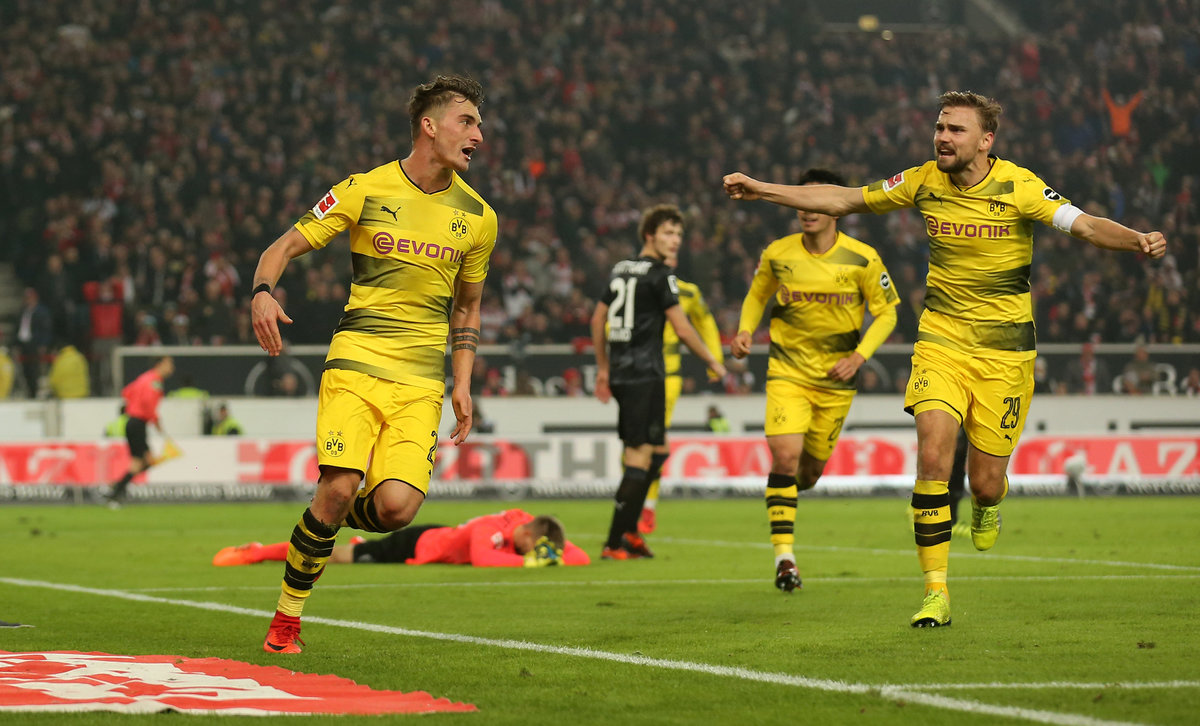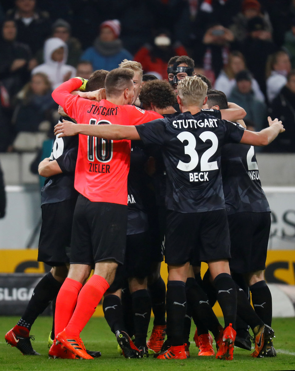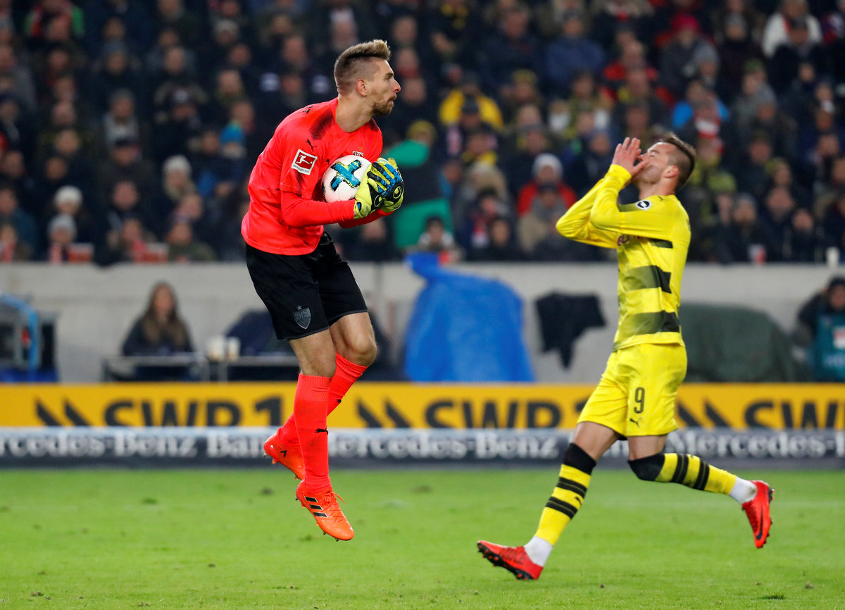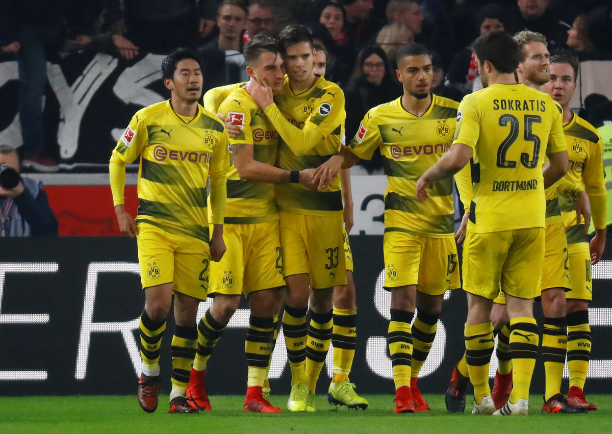 Soccer Football - Bundesliga - VfB Stuttgart vs Borussia Dortmund - Mercedes-Benz Arena, Stuttgart, Germany - November 17, 2017 Stuttgart players celebrate after the match REUTERS/Kai PfaffenbacSoccer Football - Bundesliga - VfB Stuttgart vs Borussia Dortmund - Mercedes-Benz Arena, Stuttgart, Germany - November 17, 2017 Stuttgart's Josip Brekalo scores their second goal REUTERS/Thomas Niedermueller Soccer Football - Bundesliga - VfB Stuttgart vs Borussia Dortmund - Mercedes-Benz Arena, Stuttgart, Germany - November 17, 2017 Borussia Dortmund’s Maximilian Philipp celebrates scoring their first goal with team mates REUTERS/Kai Pfaffenbach Soccer Football - Bundesliga - VfB Stuttgart vs Borussia Dortmund - Mercedes-Benz Arena, Stuttgart, Germany - November 17, 2017 Stuttgart's Ron-Robert Zieler reacts after a penalty is awarded to Borussia Dortmund REUTERS/Kai Pfaffenbach Soccer Football - Bundesliga - VfB Stuttgart vs Borussia Dortmund - Mercedes-Benz Arena, Stuttgart, Germany - November 17, 2017 Borussia Dortmund’s Shinji Kagawa in action REUTERS/Kai Pfaffenbach Soccer Football - Bundesliga - VfB Stuttgart vs Borussia Dortmund - Mercedes-Benz Arena, Stuttgart, Germany - November 17, 2017 Borussia Dortmund’s Dan-Axel Zagadou in action with Stuttgart's Takuma Asano REUTERS/Thomas Niedermueller