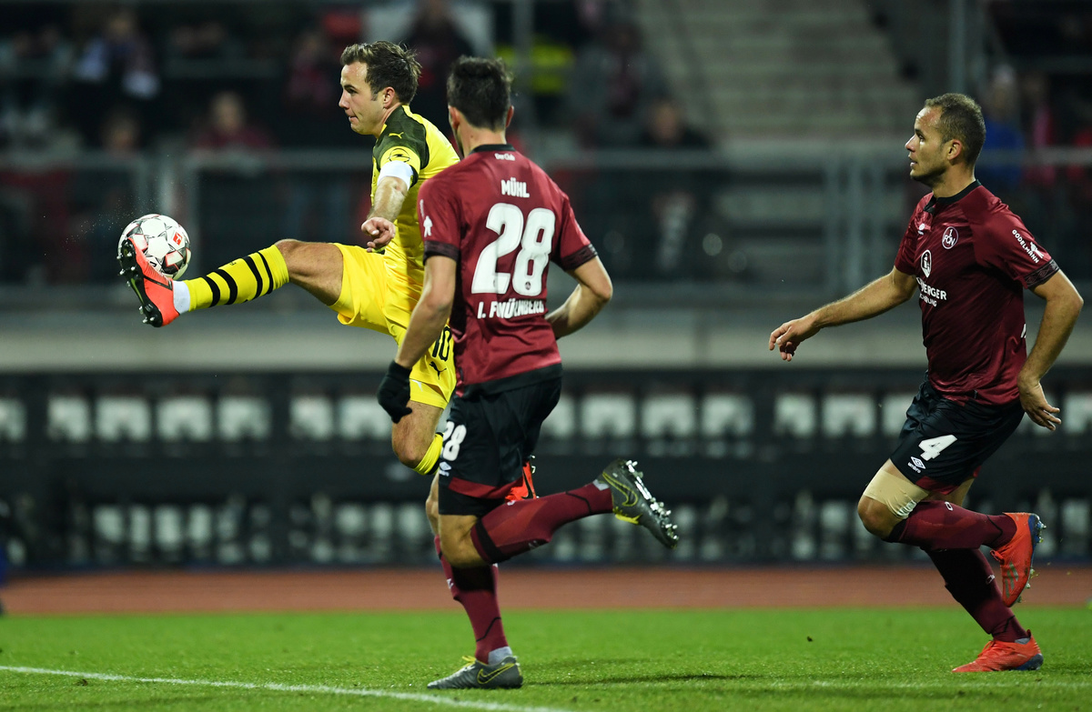 As expected the Ruhr valley club had the upper hand throughout but could not score, with Nuremberg keeper Christian Mathenia in fine form and repeatedly denying Mario Goetze as the visitors had 18 shots on goal.