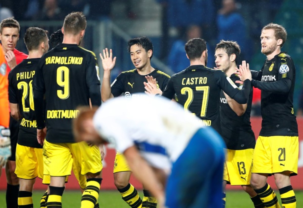 Alexander Isek, Andriy Yarmolenko, with a penalty, Marc Bartra and Shinji Kagawa added further goals as the visitors ran riot in the second half.