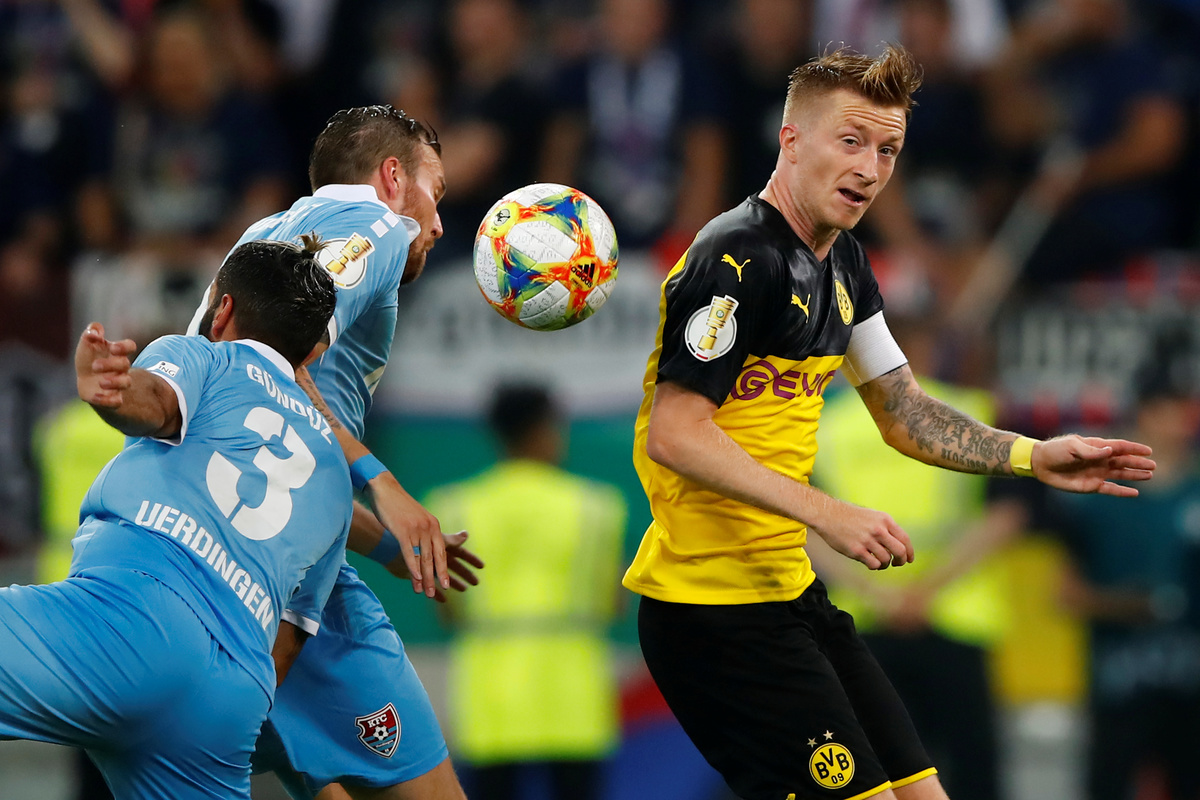 With no video replay in the German Cup Reus' goal stood, although the player looked to have touched the ball with his upper arm to control Manuel Akanji's cross.