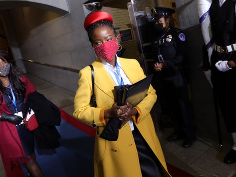 During President Biden’s inauguration, for example, attendees including Amanda Gorman and Pete Buttigieg were seen wearing layered masks, with the poet showing off what appeared to be a disposable white mask beneath her sparkly red mask, while the former presidential candidate also wore a surgical mask under a cloth mask.