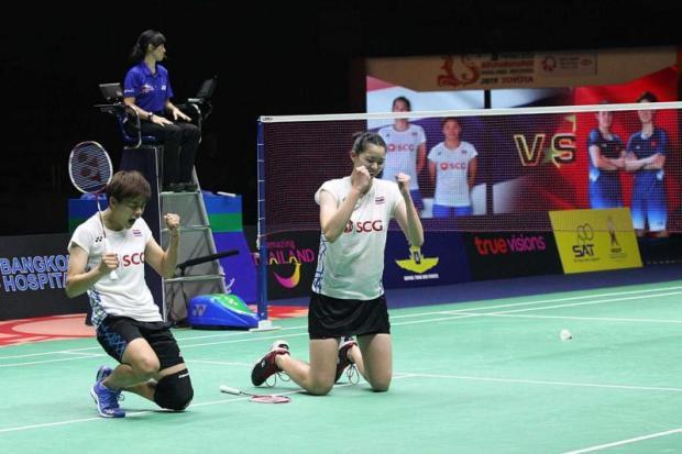 The unseeded Thais fought back to defeat fifth seeds Li Wenmei and Zheng Yu of China 15-21, 21-15, 21-10 in the final of the US$150,000 (approximately 4.9 million baht) World Tour Super 300 event yesterday.