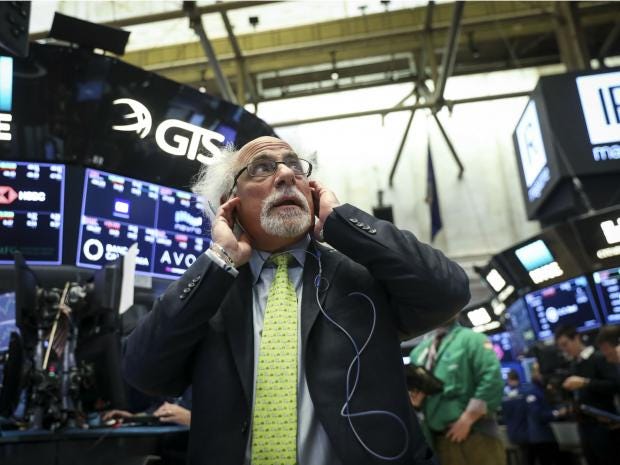 The fall meant that Wall Street ended its worst week since January 2016, with all three major indexes suffering tumbles. The Dow lost 424 points, or 1.8 per cent, to 23,533, bringing its weekly decline to 1,400 points. The S&P 500 fell 55 points, or 2.1 per cent, to 2,588. The Nasdaq fell 174 points, or 2.4 per cent, to 6,992.