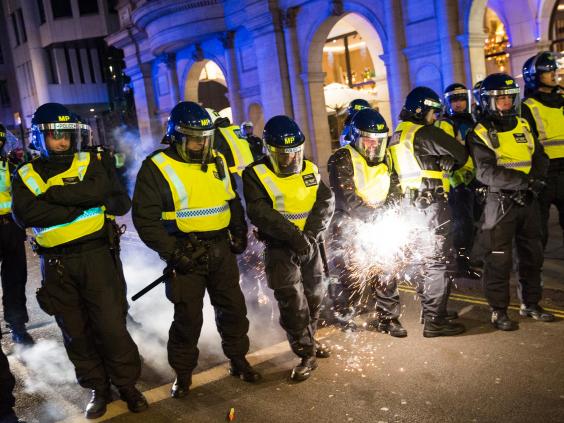 The Metropolitan Police said "the majority of those taking part were peaceful" but there were "pockets" of disorder and multiple fireworks thrown, though they did not inflict injury.