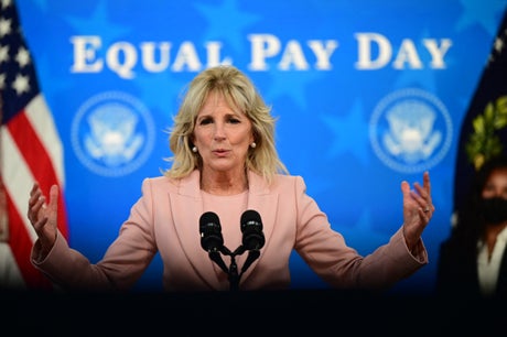 One statistic Dr Biden cited was that women “have to work three months and 24 days longer to make the same amount as their male colleagues”. For Black and Hispanic women, she added, it tends to be months longer.