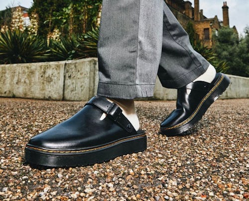 Dr. Martens, which already produces plenty of footwear staples, has presented its own take on the slip-on shoe destined to join the ranks of seasoned mule makers like Birkenstocks and Crocs. Dubbed the Carlson Lusso, the mule flaunts Dr. Martens’ classic black leather and a movable ankle strap, allowing it to be worn as a slip-on or around the ankle for extra support.