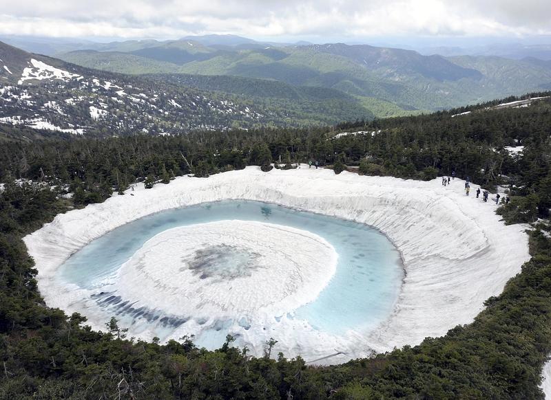 A natural phenomenon called the "dragon's eye," which heralds the arrival of spring, can now be seen at a pond near the peak of 1,613-meter Mt. Hachimantai on the border between Iwate and Akita prefectures.