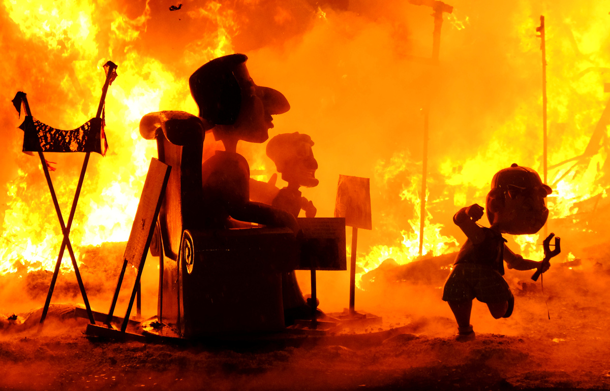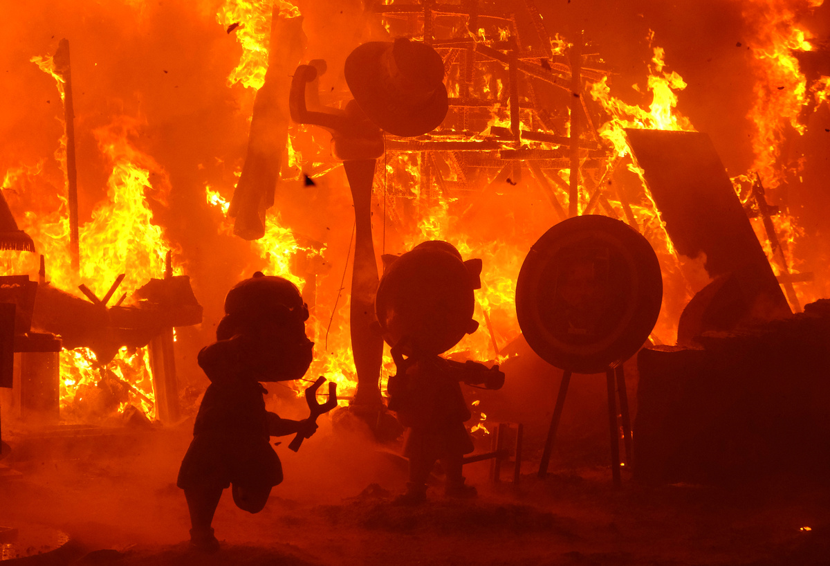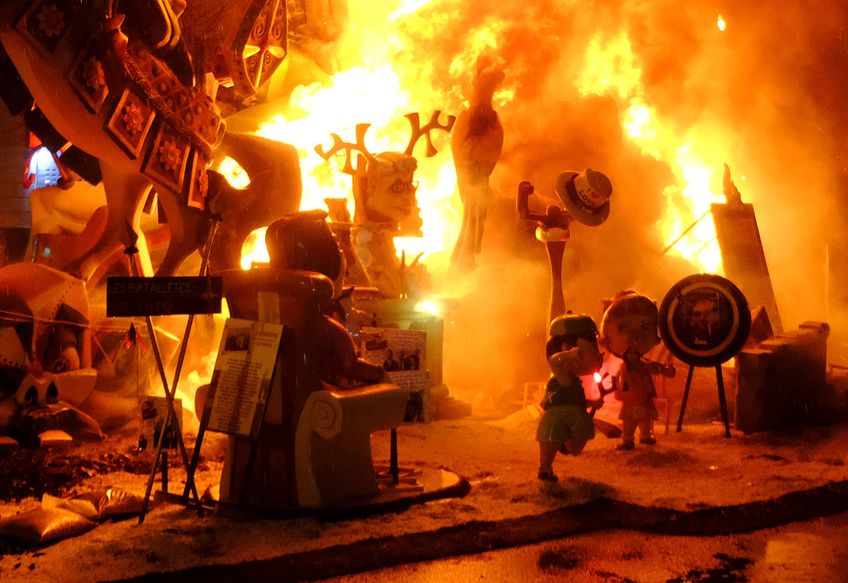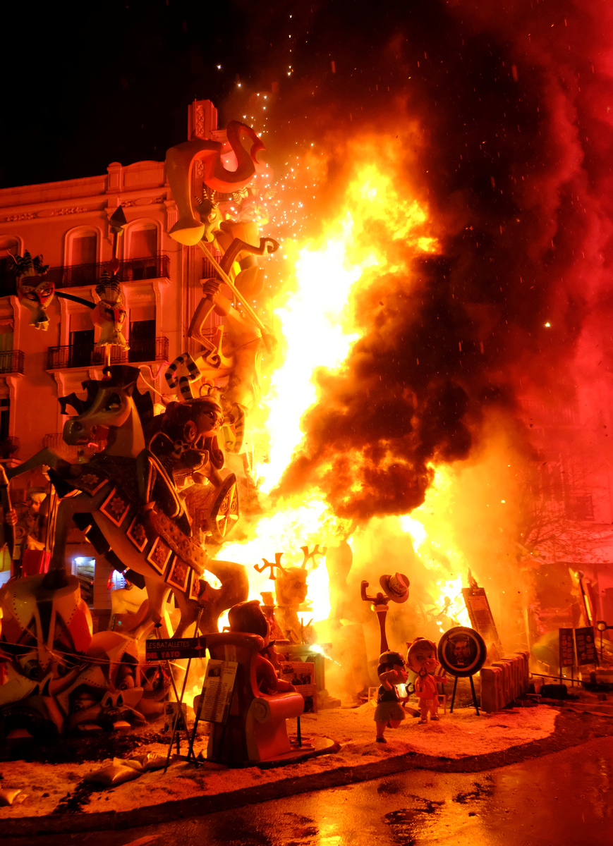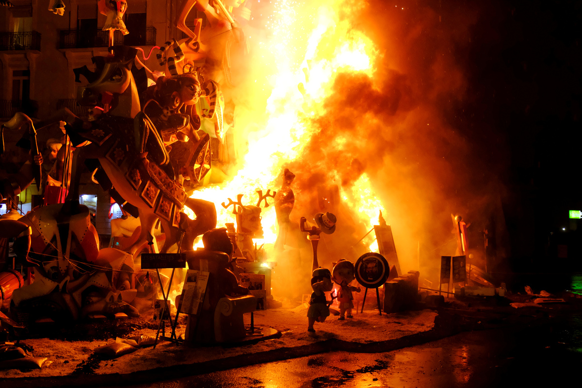 Each year, members of the public vote on their favorite sculptures to save the best two from the final bonfire called "Cremà".