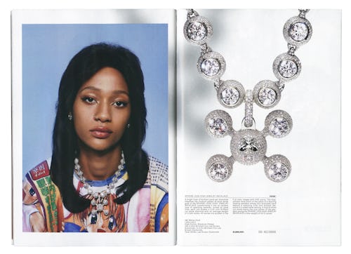 Drake’s blinged-out necklace features pavé links and .33-inch white diamonds that cover the piece’s orbs and floating pendant. A brilliantly cut stone marks the center of the pendant in a sleek bezel setting, with the necklace weighing in at 127.5 carats in total. The sparkling accessory is hard to miss, and Ocean made sure to highlight his new highest-profile customer with a rare post to his Instagram story.
