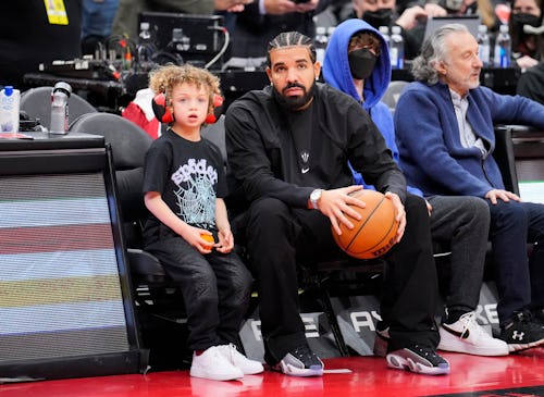 For Drake, balling out always leads to courtside appearances. Forget Instagram — the rapper sees no better place than basketball games to show off new purchases, unreleased sneakers, or quality father-son time, recently flaunting a $1.9 million diamond necklace from Frank Ocean’s Homer brand during a Lakers vs. Raptors basketball game.