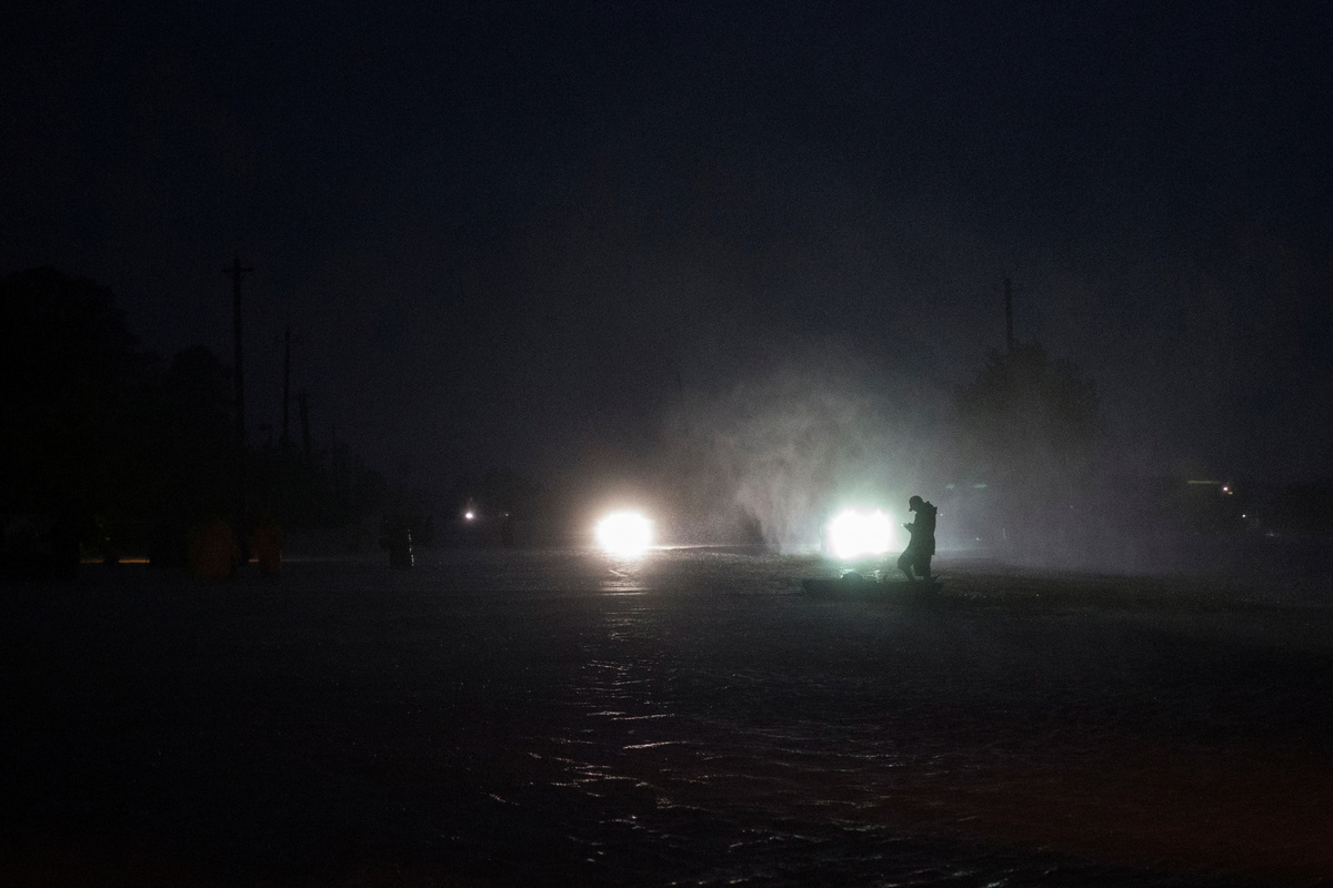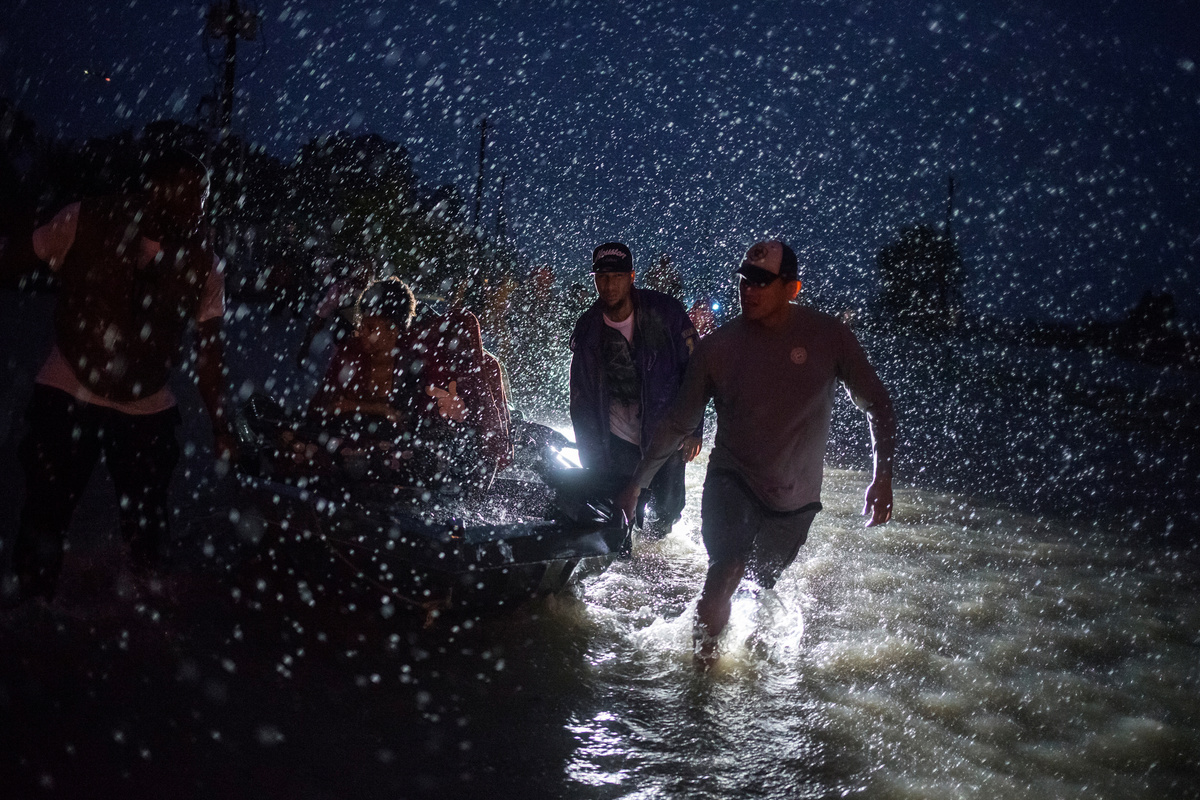 In the dark hours of the night, the National Guard navigated their vehicles through neighborhoods transformed into inland lakes with water cresting to the tops of mail boxes and fire hydrants and garden shrubbery looking more like watery mangrove forests.