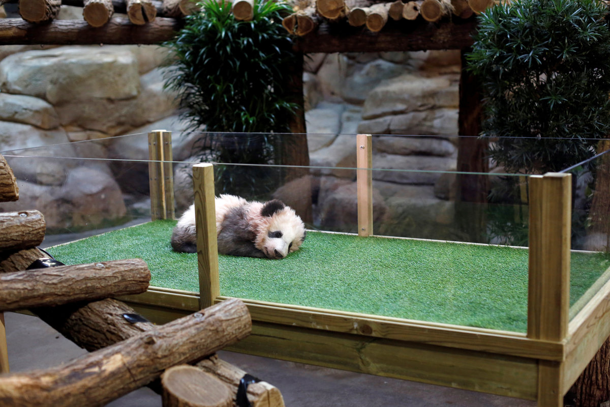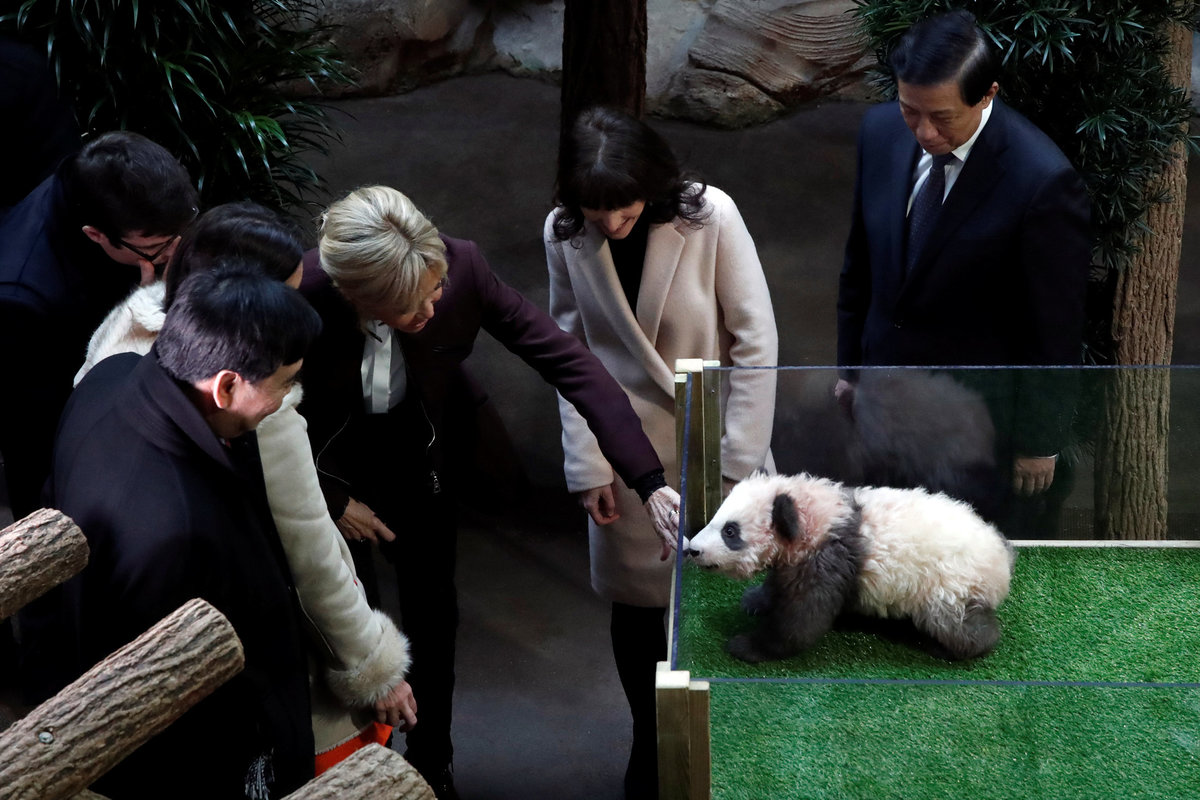 A four-month-old cub named Yuan Meng, which means “the realization of a wish” or “accomplishment of a dream”, is pictured during it naming ceremony at the Beauval Zoo in Saint-Aignan-sur-Cher, France, December 4, 2017. REUTERS/Thibault Camus/PoolA four-month-old cub named Yuan Meng, which means “the realization of a wish” or “accomplishment of a dream”, is pictured during it naming ceremony at the Beauval Zoo in Saint-Aignan-sur-Cher, France, December 4, 2017. REUTERS/Thibault Camus/PoolChildren attend a naming ceremony of a panda born at the Beauval zoo in Saint-Aignan-sur-Cher, central France, December 4, 2017. REUTERS/Benoit TessierBrigitte Macron, wife of the French president, attends a naming ceremony of the panda born at the Beauval Zoo, with China's Vice Minister of Foreign Affairs Zhang Yesui and Rodolphe Delord, director of the zoo, in Saint-Aignan-sur-Cher, France, December 4, 2017. REUTERS/Benoit TessierYuan Meng, a four-month-old baby panda, is seen inside his enclosure during a ceremony attended by his godmother, Brigitte Macron (not in the picture), French President's wife and China's Vice Minister of Foreign Affairs Zhang Yesui (not in the picture) at the Beauval zoo in Saint-Aignan-sur-Cher, central France, December 4, 2017. REUTERS/Benoit Tessier