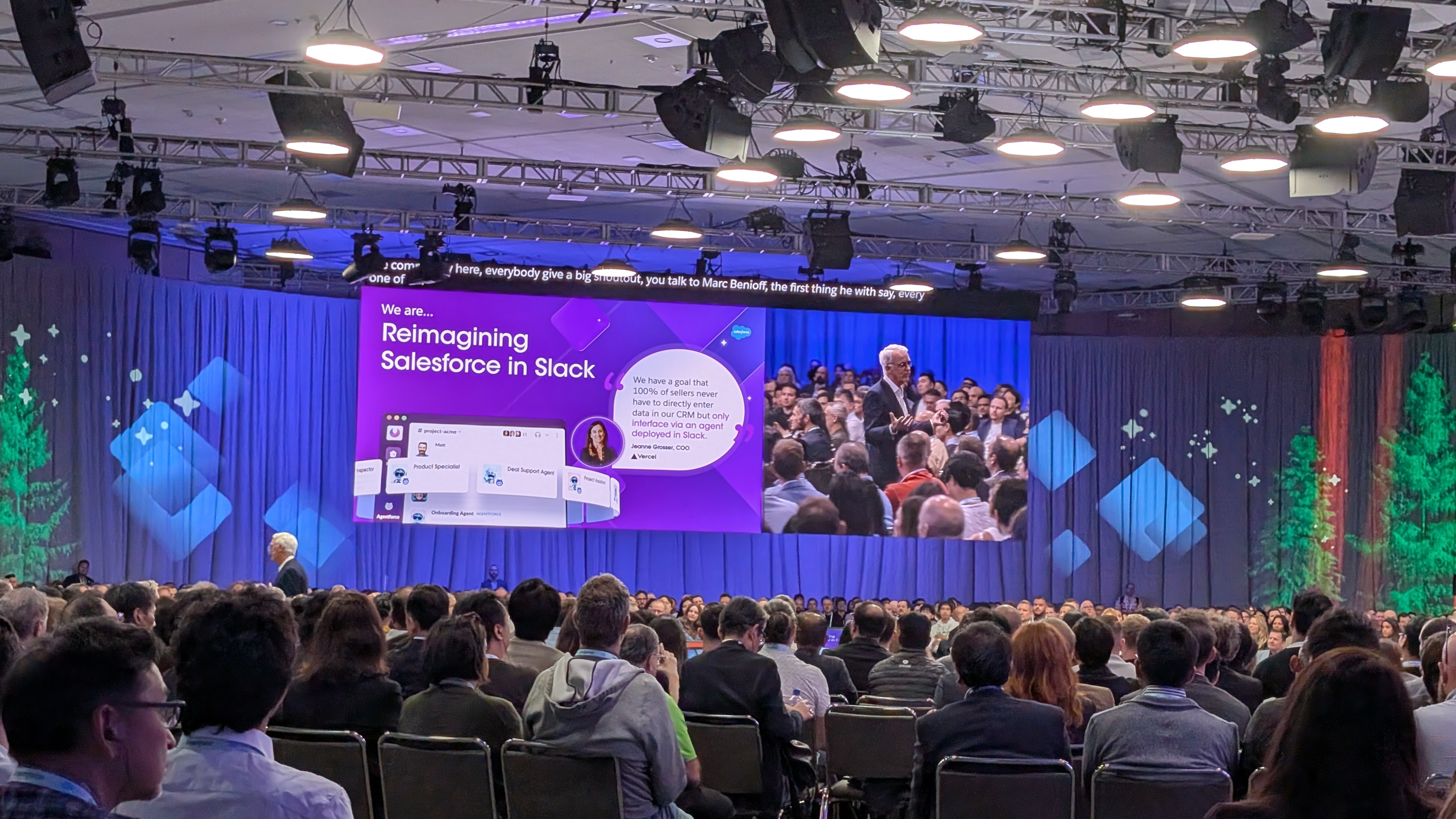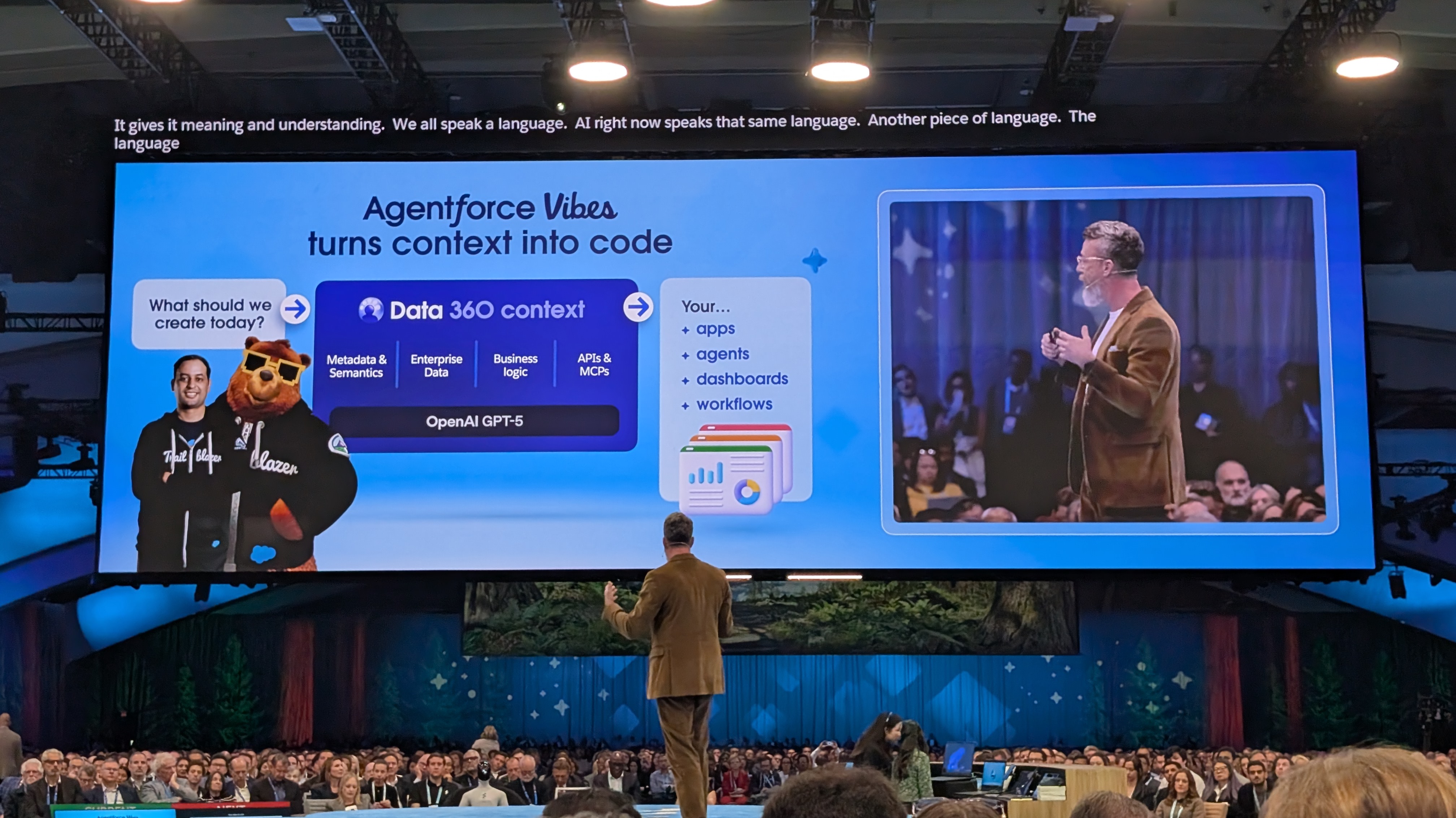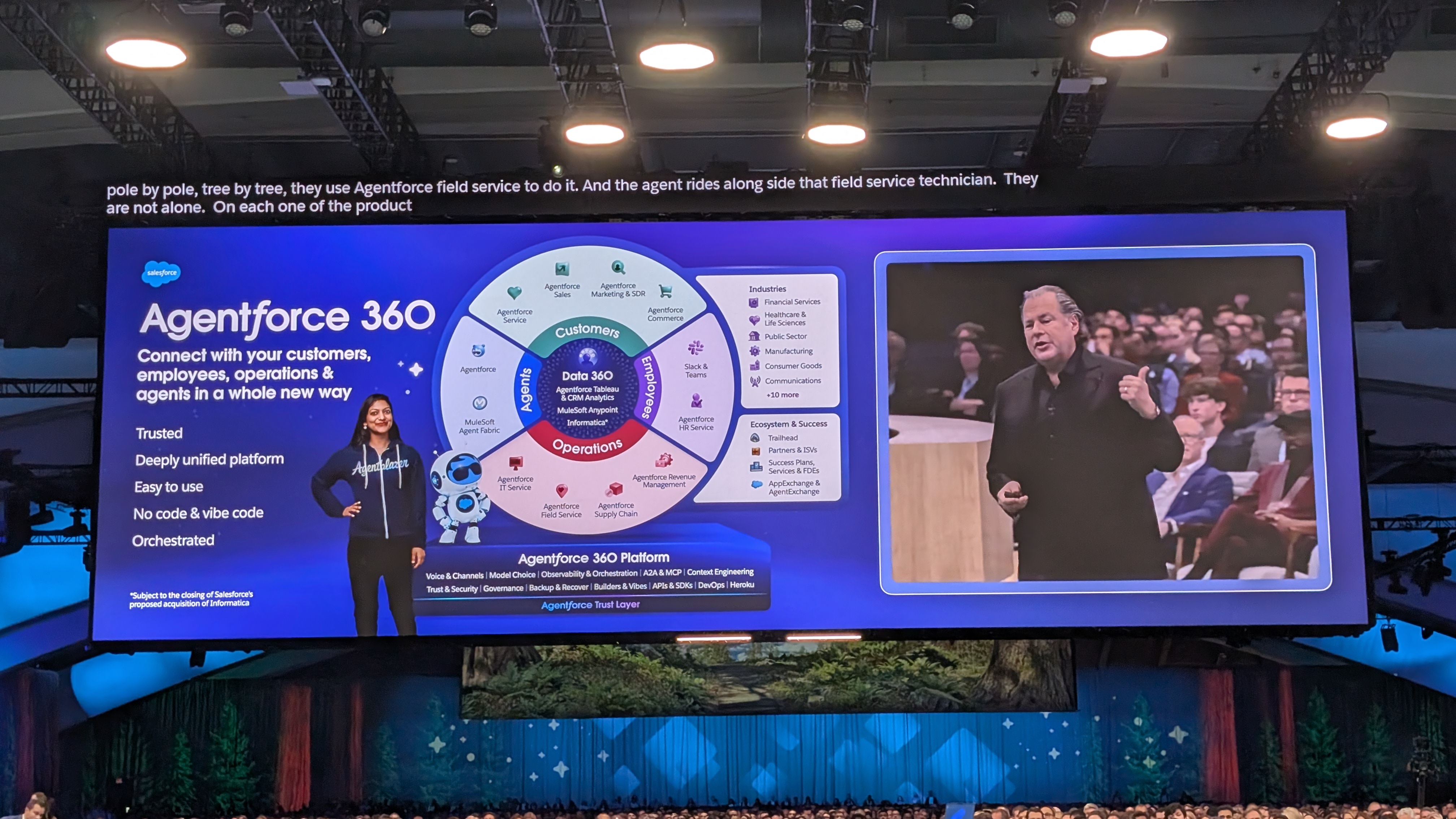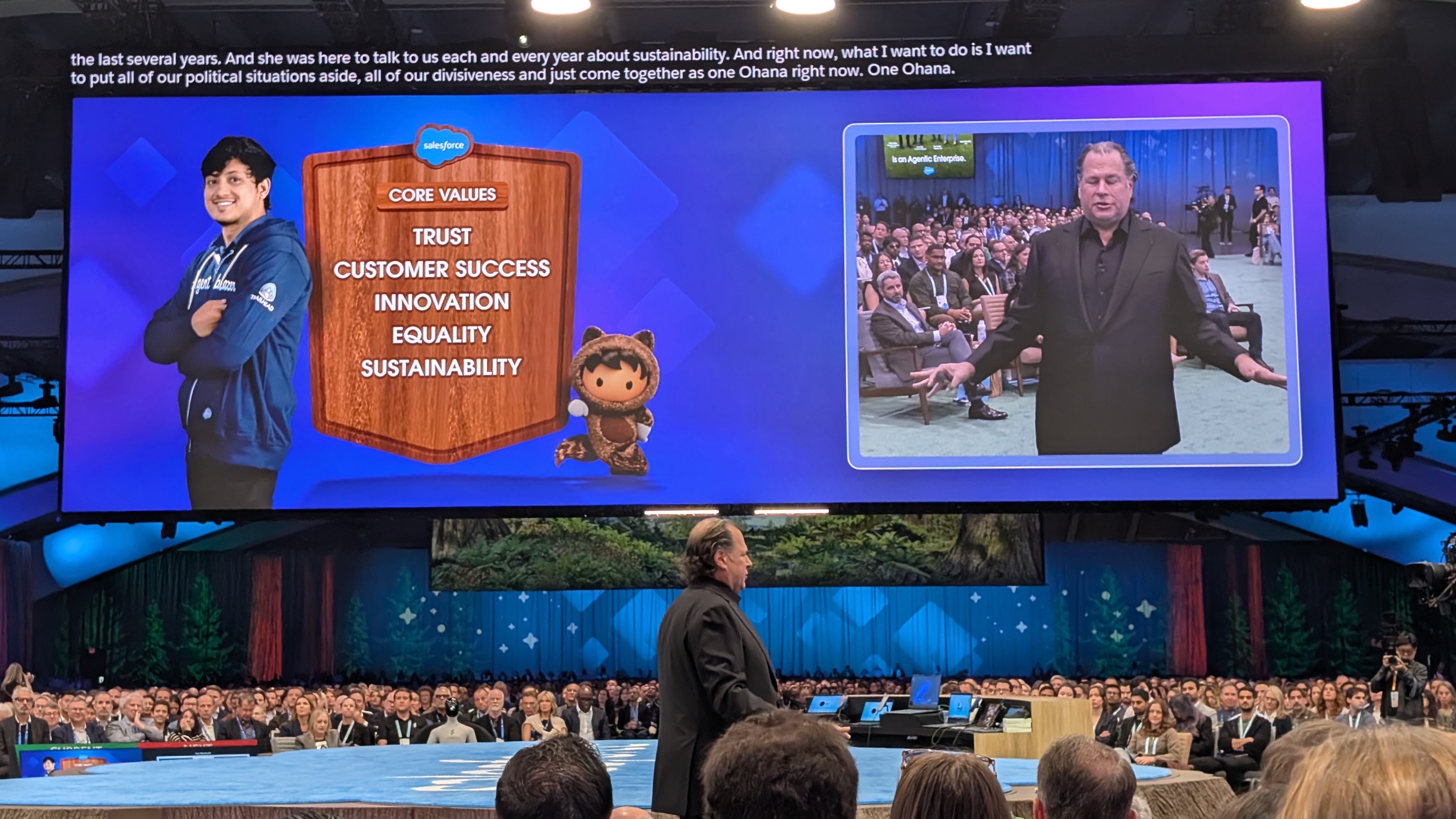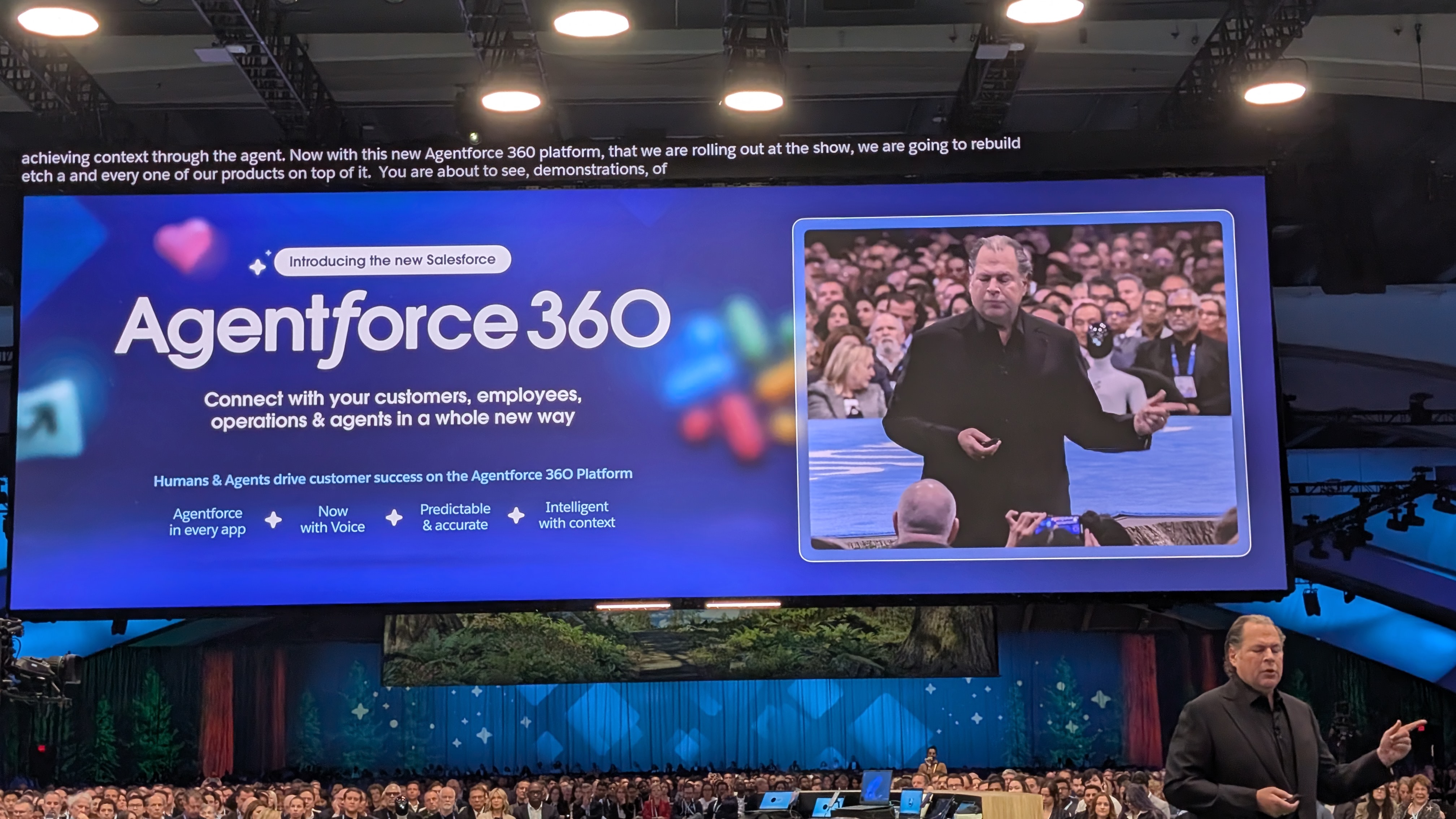 It's go time - after an introductory video voiced by (who else) Hollywood royalty and Salesforce VIP Matthew McConaghey, marking a year of Agentforce, the lights come up, and Marc Benioff, Salesforce co-founder and CEO, takes to the stage.