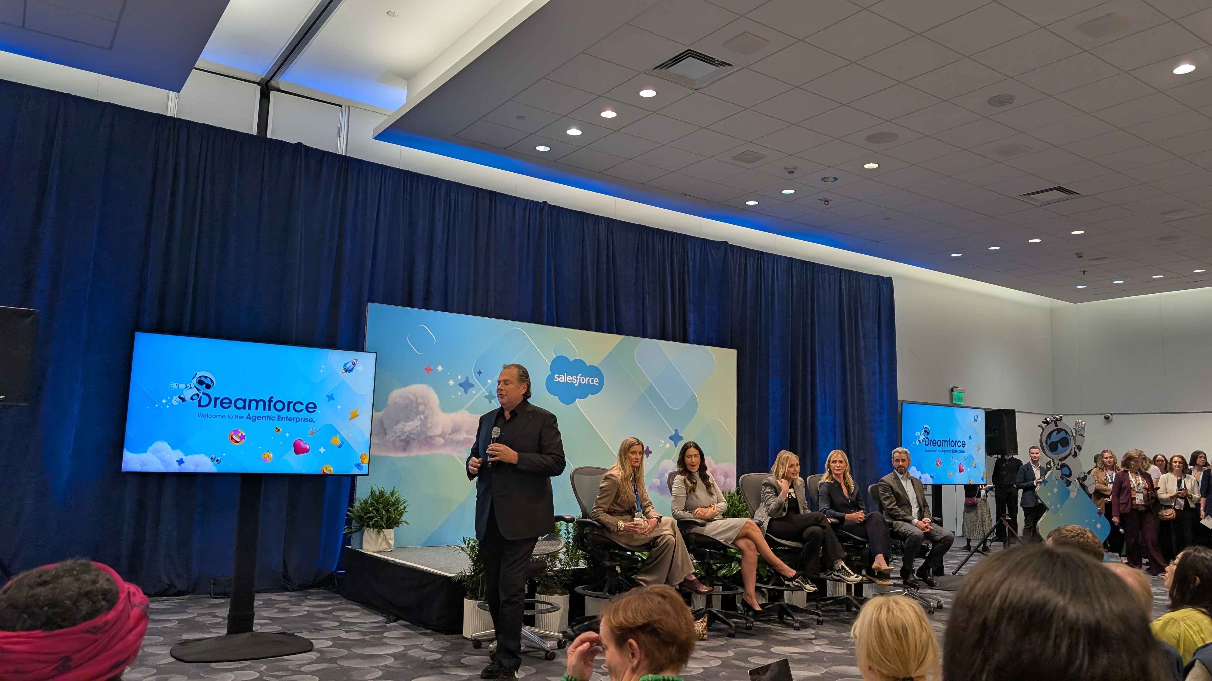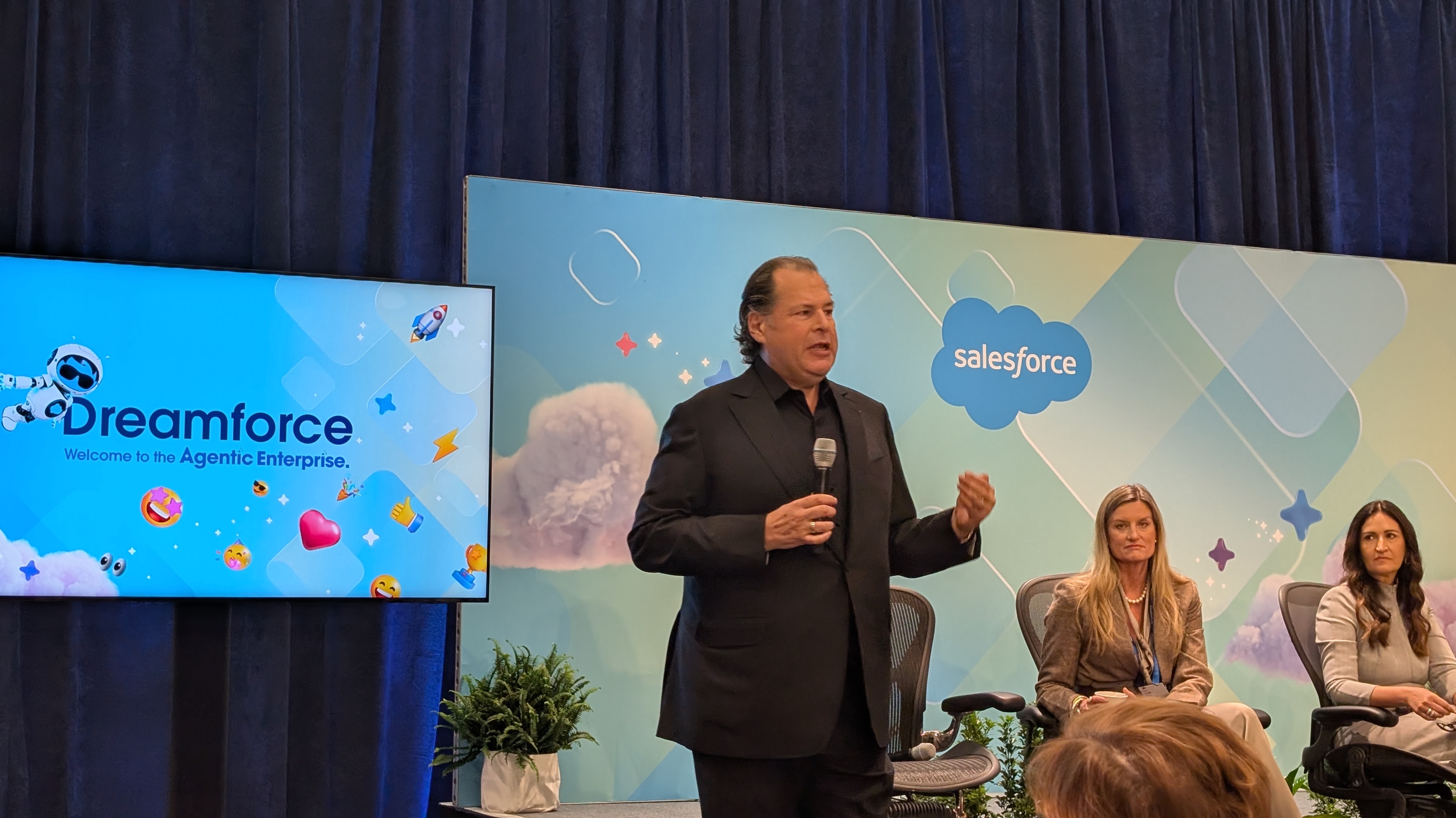 We're back in the press lounge now, but about to be joined by a few special guests - Marc Benioff will be here shortly for a Q&A session alongside a few customers.