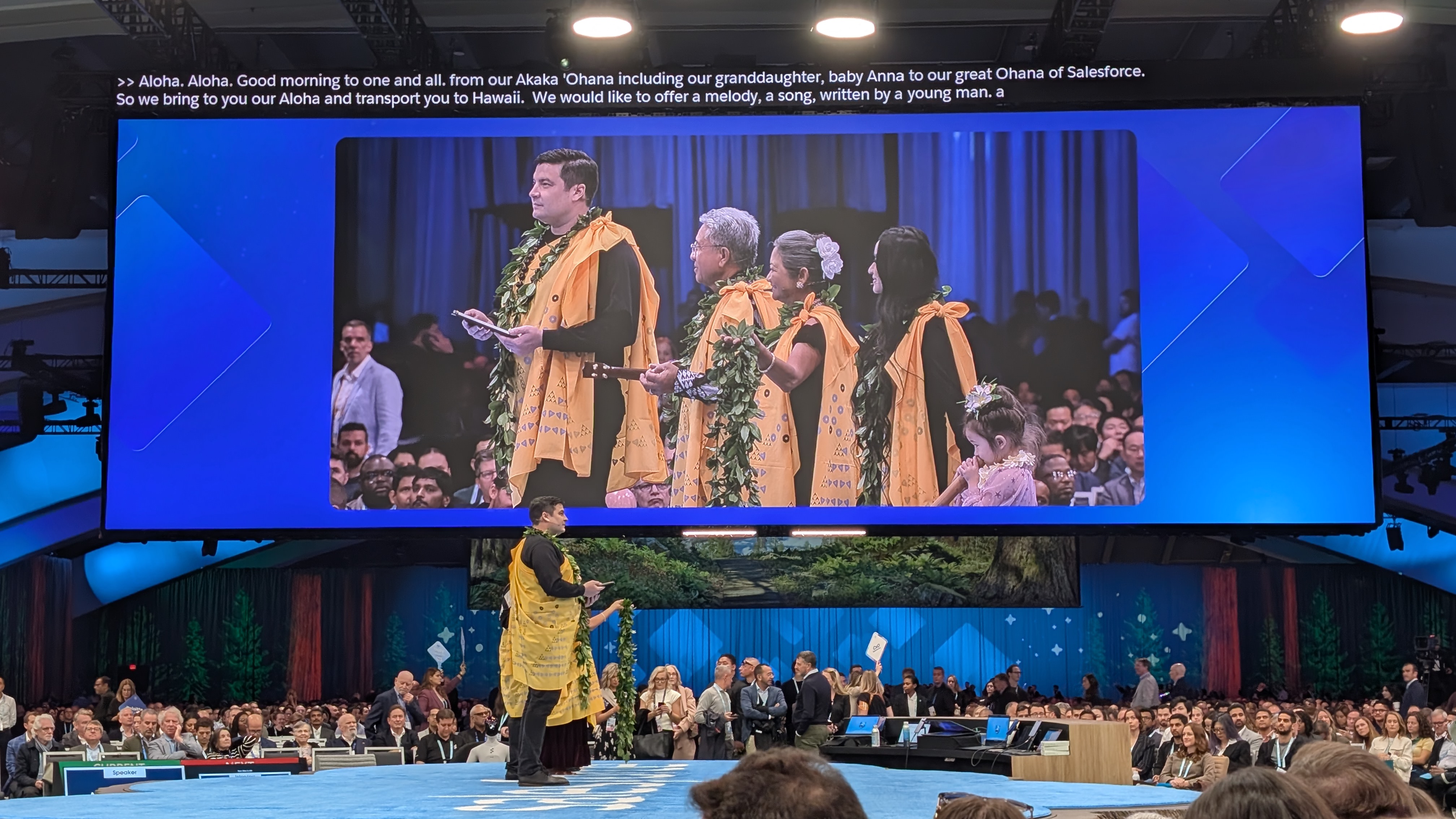 Next it's time for the traditional Akaka Ohana welcome - another Dreamforce tradition that looks to start the event with a moment of thanks and wellness.