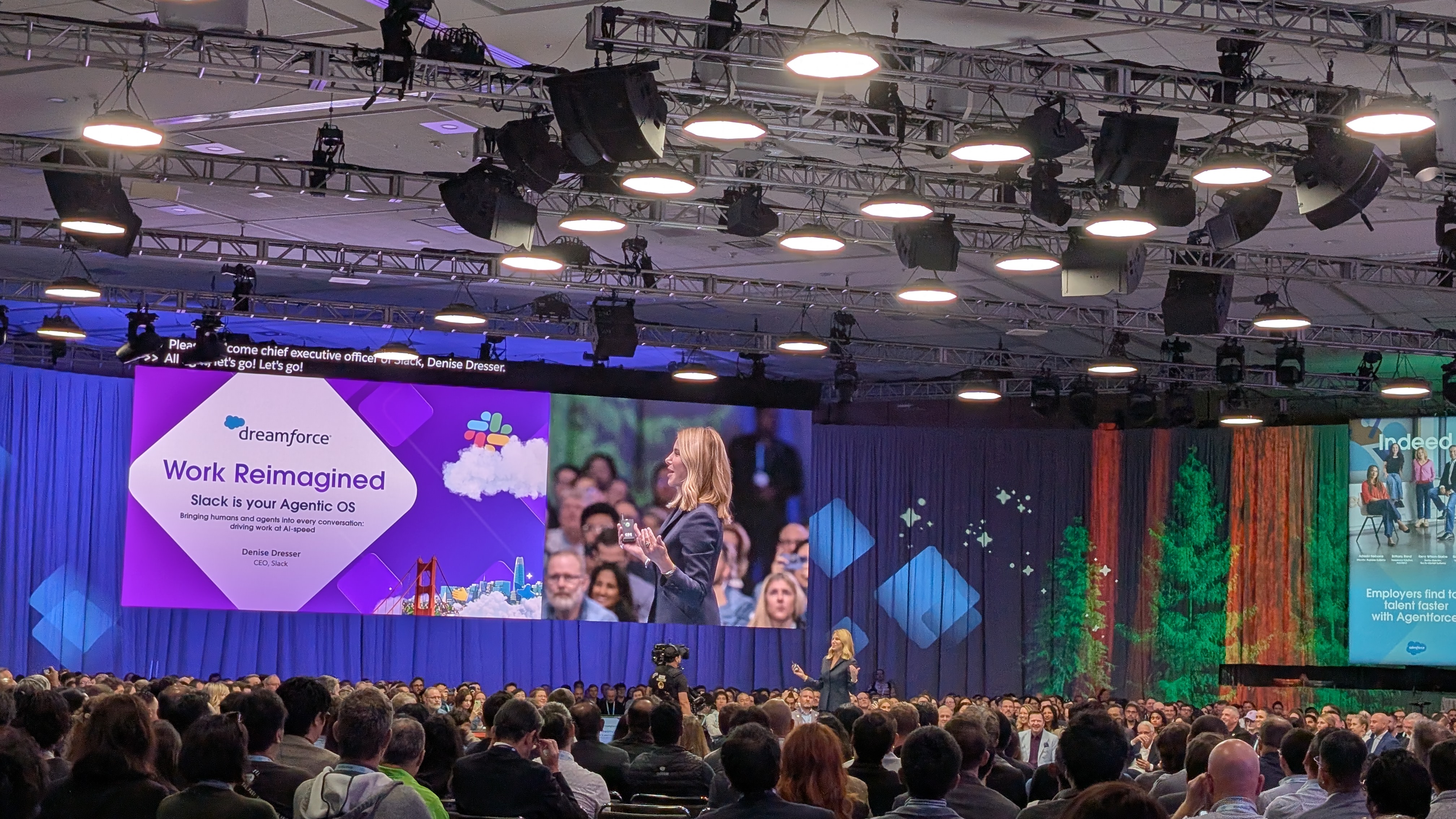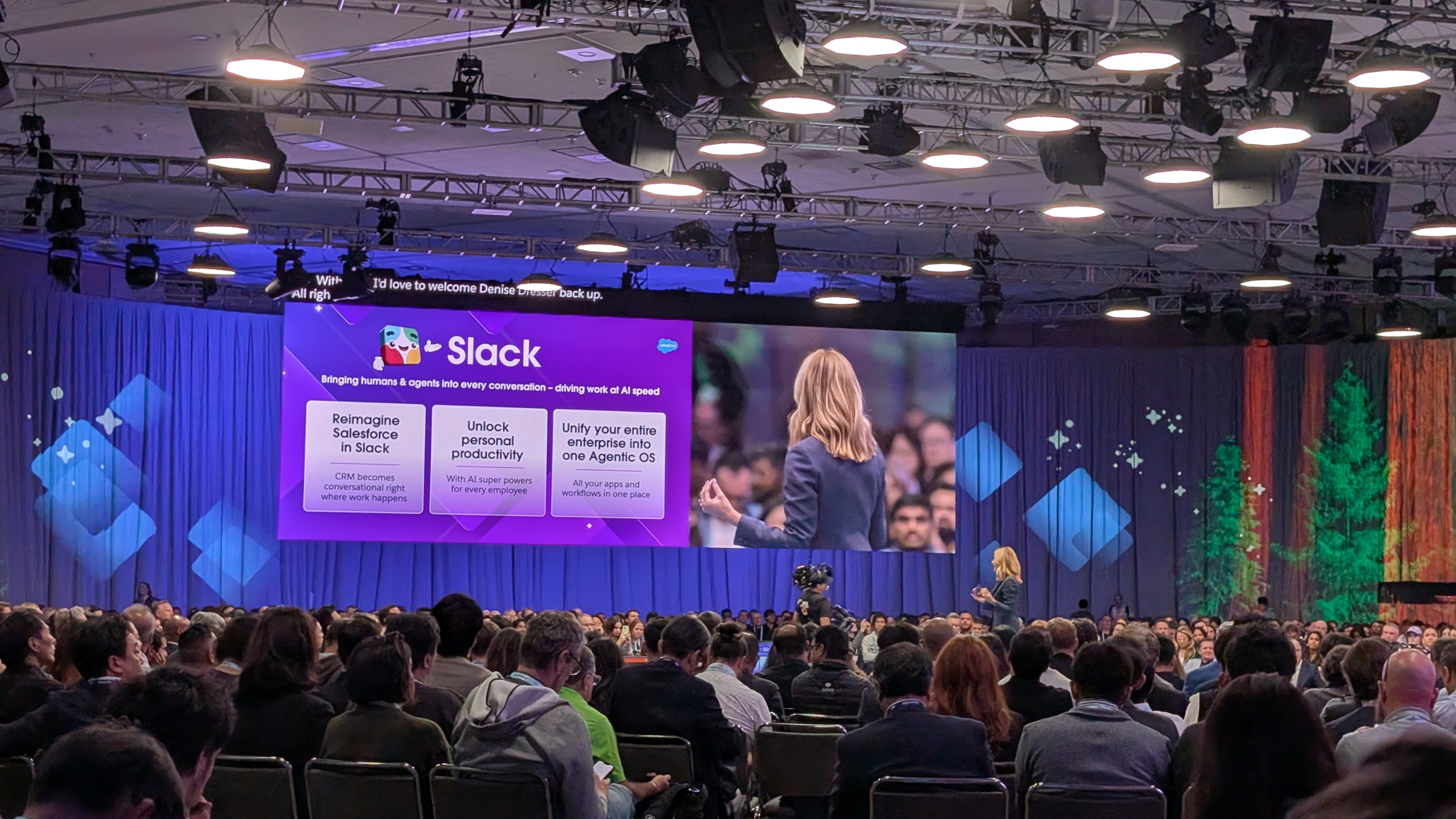Our host today - Slack CEO Denise Dresser - welcomes us in, promising a keynote full of innovation and breakthrough customers.