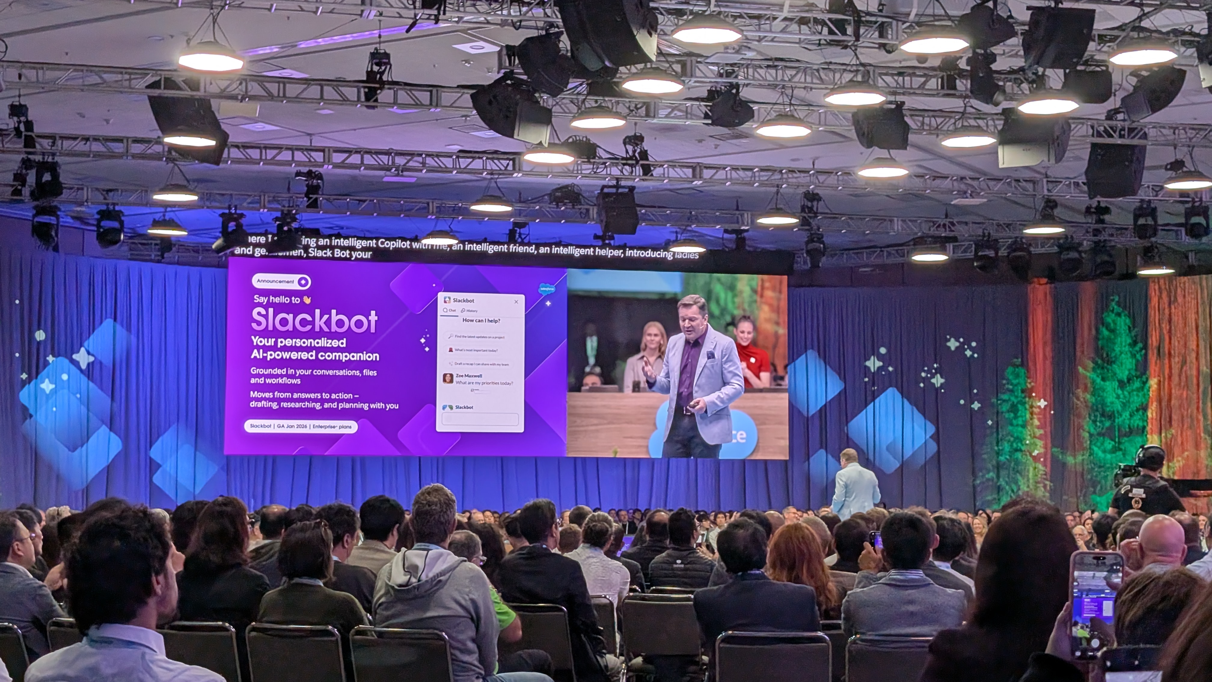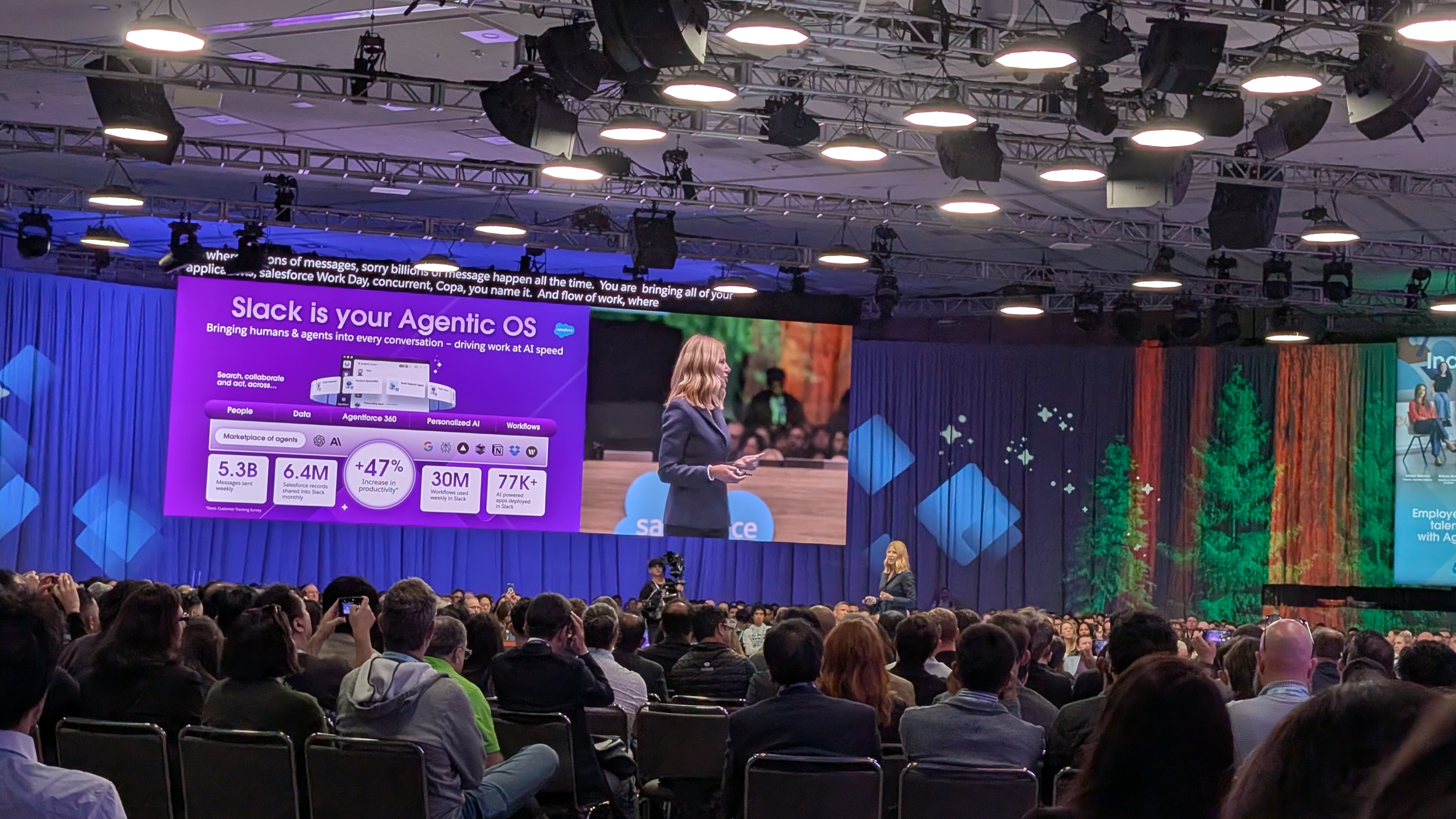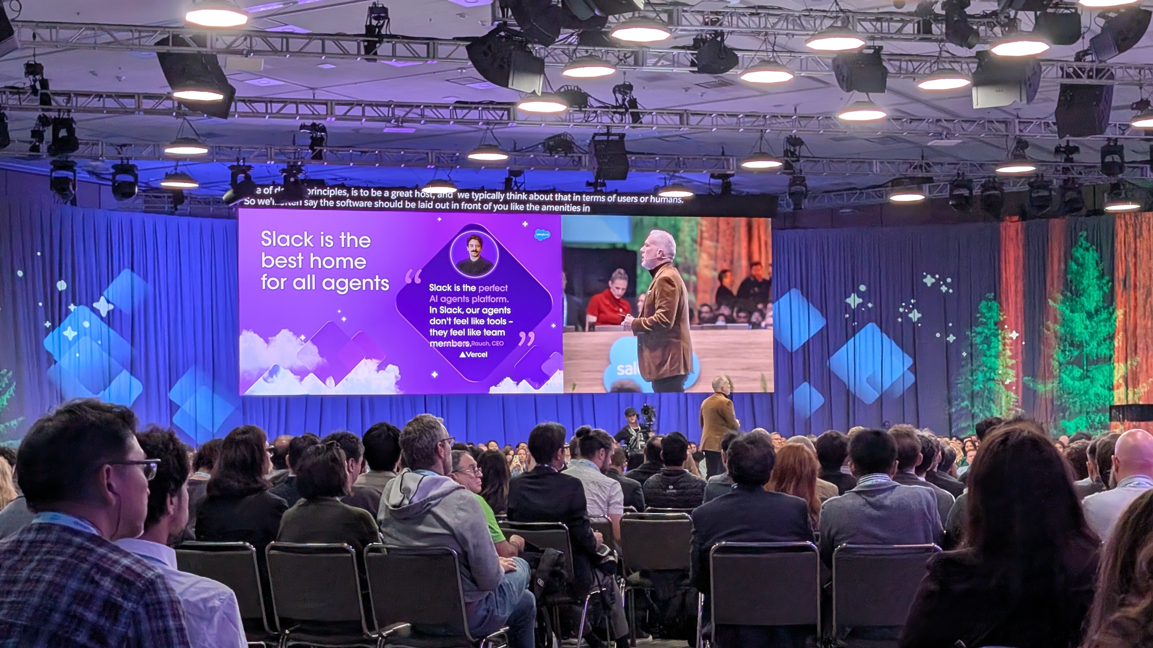 Next up, we're in and seated at the Slack keynote, to hear everything new from the online collaboration platform.
